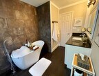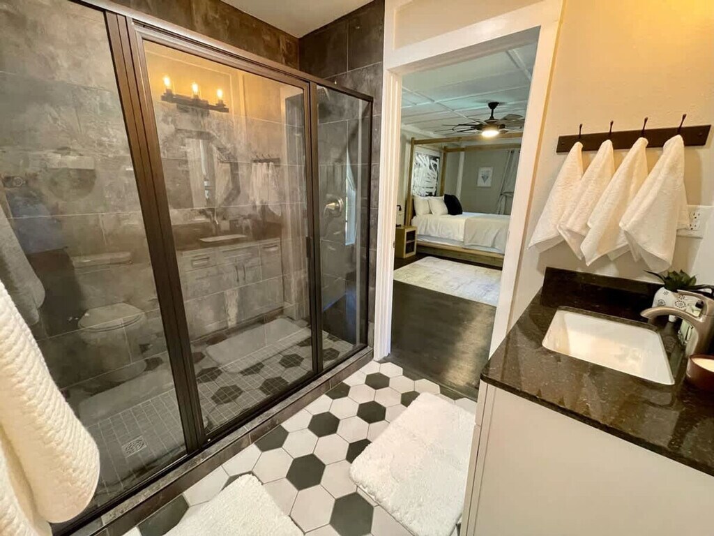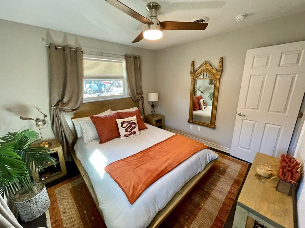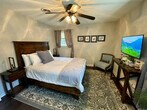 Experience a perfect blend of luxury and comfort with this 4-bedroom oasis. Nestled in the heart of Bentonville, this haven is ideally located for art enthusiasts, cyclists, and family getaways. Delight in world-class museums, illustrious biking trails, and gourmet eateries, just steps from your door. This dog-friendly abode, replete with upscale amenities, promises an unforgettable retreat to immerse yourself in the vibrant culture of Bentonville. Welcome to this luxurious haven where Bentonville's rustic charm meets sleek modern aesthetics. Within this four-bedroom oasis, contemporary comforts harmonize with a whisper of homeliness to create a perfect vacation spot for your family or group. Step into the vibrant living room shimmering with natural light reflected off polished wooden floors. Revel in relaxation or entertainment as comfortable sofas beckon you to the glow of a large flat-screen TV. Venture further to discover a fully equipped, modern kitchen seamlessly extending from the living room. Whip up your home-style meals, courtesy of the essential appliances and cookware. A coffee maker awaits your mornings, and a dishwasher takes care of the aftermath. When it's time to retire, each of the four bedrooms introduces you to tranquility redefined with plush queen beds, ample storage, and warm décor. The bathrooms receive a touch of luxury with standing bathtubs for unwinding. Beyond the indoors, a tranquil outdoor space awaits with a patio, BBQ party setup, and a fire pit under Arkansas' brilliant sky. For those combining business with pleasure, a dedicated workspace is provided, complemented by high-speed WiFi, free parking for up to three vehicles, air conditioning, heating, laundry amenities, a smart lock, and a single-level layout for easy mobility. We welcome up to two house-trained dogs with a small fee of $75 per pet per stay. Unfortunately, we are unable to host cats at this time. This prime location in downtown Bentonville puts you right at the center of the action. Stroll or ride to the historic square less than a mile away, or immerse yourself in Bentonville's illustrious heritage at the Walmart and Native American History Museums. The Crystal Bridges Museum of American Art and Osage Park are a stone's throw away for your cultural indulgence. Experience the vibrant biking trails teeming with lush greenery, a unique thrill for bike lovers. Bentonville is known for its biking-friendly community, so be sure to explore on two wheels whenever you can. Otherwise, parking for two to three cars is available, and Uber and Lyft operate in the area. Quiet hours are from 9:00 PM to 8:00 AM, so please be mindful of neighbors. Only registered guests are allowed, and approval is needed before inviting others. Up to two well-behaved dogs are welcome with a fee of $75 per pet per stay. Please clean up after them and keep them off the furniture. No smoking or vaping indoors; use designated outdoor areas and dispose of cigarette butts properly. Do not tamper with WiFi routers, security cameras, or smart devices. Park only in the driveway, which fits three vehicles, and do not park on the street or neighbors' property. Report any damages or maintenance issues immediately for assistance. Includes a dedicated workspace complemented by high-speed WiFi. [SI]
