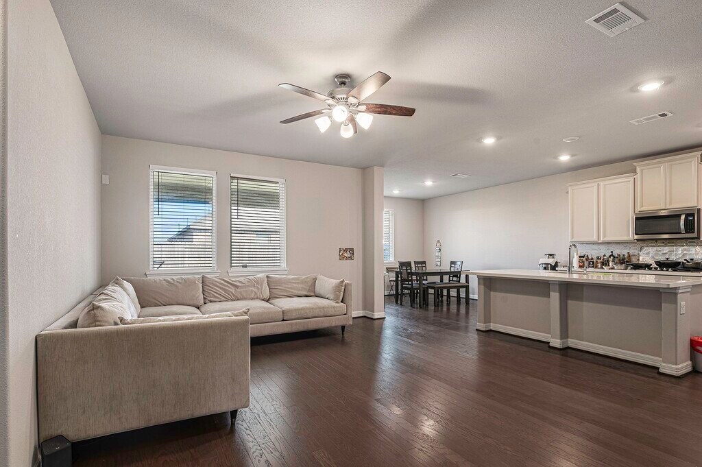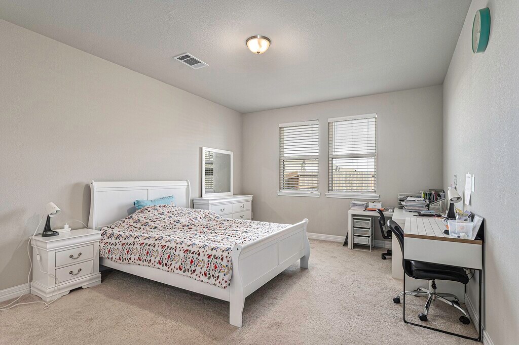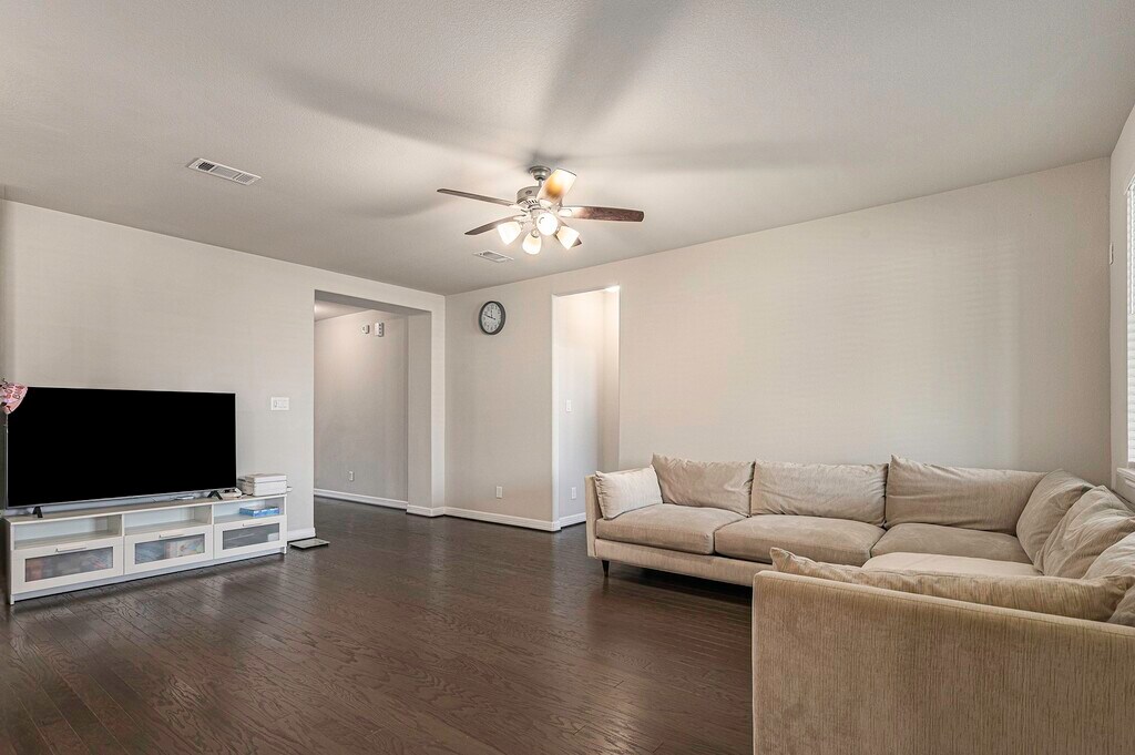 Enter through a commanding 8-foot front door into a bright,airy floor plan. The private primary retreat offers a spa-like escape,boasting dual vanities,a large walk-in shower,& a separate soaking tub for ultimate relaxation. The secondary bdrms are generously sized,providing plenty of room for guests or a home office. This 4-year-old beauty is packed with high-end designer upgrades: Chef’s Kitchen: Quartz counters,42” designer cabinets,& a massive stainless farmhouse sink. Luxury Flooring: Beautiful Shaw engineered hardwoods throughout the main living areas. Aura of Space with soaring high ceilings. Primary Retreat: Spa-inspired bath with a deep soaking tub & oversized shower. Outdoor Fun: Extended covered patio perfect for weekend BBQs! Don't miss out on the best backyard in Texas! THE LIFESTYLE: Pack your sunscreen! You’ll have full access to Sunterra’s world-class amenities: Famous Crystal Lagoon & White Sand Beaches,Relaxing Lazy River,Massive Resort-Style Pool MLS# 14861797