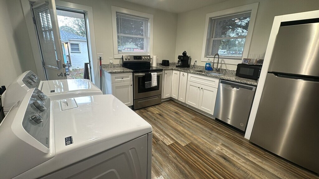 Come stay and unwind at this thoughtfully designed apartment, moments from the Swamp Rabbit Trail. It's the perfect mix of comfort, style, and convenience, whether you're visiting for a weekend escape or an extended stay. You'll find everything you need to relax and feel at home in this bright, clean, and modern space. This apartment features a super comfy bed and a well-stocked coffee station with both a dual Keurig and drip coffee maker, along with fun extras to enhance your stay. Located just minutes from downtown, local parks, and some of the best hidden food spots in town, you'll have easy access to explore and enjoy the neighborhood. [SI]