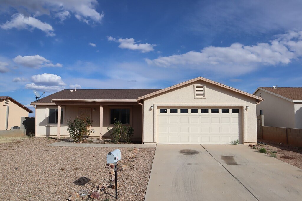 A delightful home nestled in the heart of Huachuca City, AZ. This charming abode boasts three spacious bedrooms and two full bathrooms, perfect for comfortable living. The house is equipped with a refrigerator, gas range, dishwasher, and a pantry, making meal preparations a breeze. The vaulted ceilings and ceiling fans add a touch of elegance and comfort to the living spaces. The primary bathroom features dual sinks, and an oversized garden tub, offering a spa-like experience at home. The house also features all tile floors, dual pane windows, and central air conditioning, ensuring a comfortable environment all year round. The walk-in closet provides ample storage space, while the block wall ensures privacy. The property also includes a storage shed and a 2-car garage for additional convenience. Enjoy the outdoors in the comfort of your home with the songbirds providing a serene backdrop. This house is more than just a home; it's a lifestyle. At almost 1500 sqft will be on you'll want to see. Call Wayne Lewis at or email to schedule a showing!!! 3D Tour: