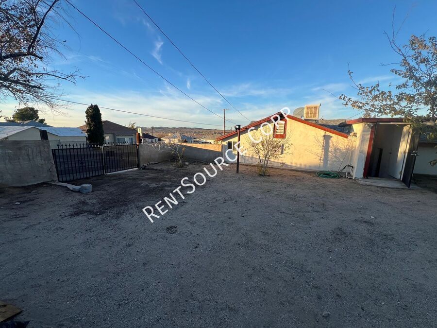 Welcome to this charming 1-bedroom, 1-bathroom home located in the vibrant city of Barstow, CA. This corner lot property boasts a range of amenities designed for comfortable living. The kitchen is equipped with a gas range, refrigerator, and a breakfast bar, perfect for those who love to cook. The home also features carpet flooring and ceiling fans throughout, ensuring a cozy atmosphere all year round. The large bedroom comes with a spacious closet, providing ample storage space. The property also includes a separate large laundry room for your convenience. For outdoor enthusiasts, the home offers two spacious fenced backyards, perfect for gardening or outdoor activities. The gated parking ensures your vehicle's safety. The home also comes with a new mini split system for efficient heating and cooling. With a stove/oven included, this home is ready for you to move in and start creating memories. *This home is a back house on a shared lot. Sewer/Trash Services Included. No Pets Please. Available Now! Please visit