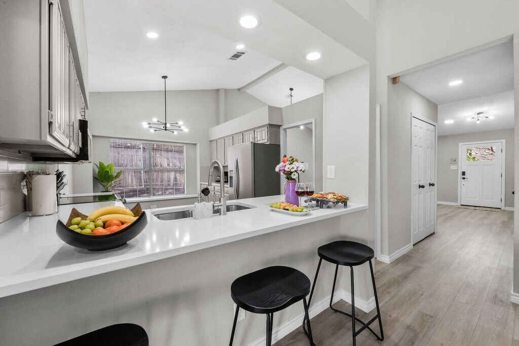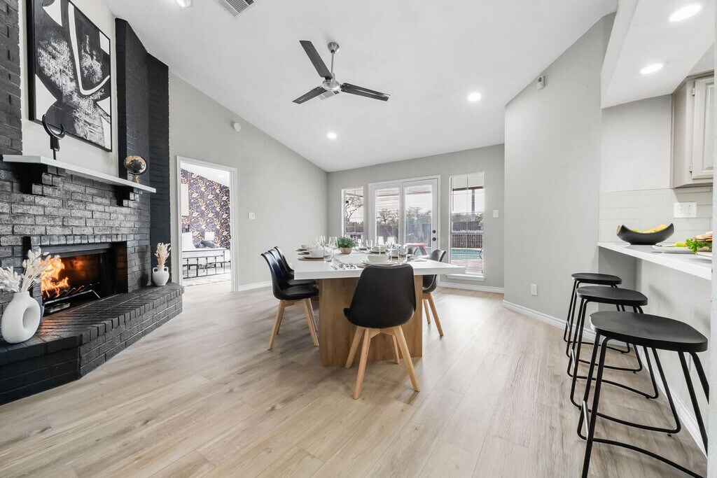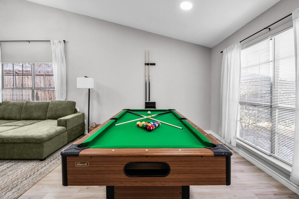 The advertised rate of $8,236/month is the lowest available price, based on a 30 day(s) stay with a move-in date of October 11, 2026. Rates vary depending on the duration of stay, season, and other parameters. For exact pricing and additional pricing components, please visit our website and enter your desired move-in and move-out dates. The rate is applicable when billed upfront; it can be higher if billed in multiple payments. Feel at home in this stylish 4-bedroom, 2-bathroom residence nestled in the heart of DeSoto, TX, perfect for a getaway. This spacious home includes a fully equipped kitchen with a dining area, a cozy indoor fireplace, and a game room perfect for hours of fun with family and friends. Step outside into a retreat-like ambiance with a pool, fire pit, and cozy outdoor seating area, ideal for relaxing. Entertainment is provided by smart TVs with streaming apps. House-trained pets are welcome with a $150 fee per pet. From the seventh guest onwards, a $39 fee per guest per night applies. The fifth bedroom opens for groups of 8+ guests. DeSoto, the All-America City, offers small-town charm and a spectacular location in the Dallas and Fort Worth Area. This quaint community resides within 15 miles of downtown Dallas in the southwest corner of Dallas County and is home to a wealth of parks and natural areas. Many of the top attractions in the Dallas and Fort Worth Area are just a stone’s throw away. No indoor smoking is allowed, and a $500 fine applies for violations. Please smoke outdoors and dispose of cigarette butts properly. Quiet hours are between 10:00 PM and 9:00 AM. The pool and kiddie pool are professionally serviced twice a week during the summer months and once a week during the rest of the year. The pool is not heated, and there is no hot tub. For security, there are two cameras: one at the front door overlooking the yard, and another in front of the garage facing the cars, which record 24/7. House rule violations can result in reservation cancellation, no refunds, and loss of deposit. The bathtub is out of service. [SI]