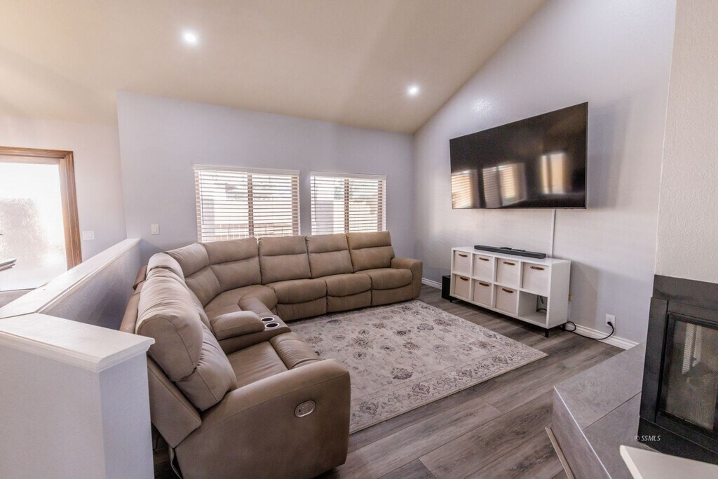 1040 Meadowview is a spacious 3,181 sq ft home with 4 bedrooms and 2.5 baths. The home is located in the beautiful and highly desired Heritage Village Association, which includes a community pool, tennis court, basketball court, courtyards, open grass areas, and walking paths. Special features include paid solar, a durable terracotta roof, well-established trees, vaulted ceilings, granite countertops, life-proof vinyl flooring, a large loft area perfect for an office or hangout spot, a dropdown living room, family room, two fireplaces, and a 3-car garage. The backyard offers two patios, low-maintenance turf, rockscape and sprinkler system. Great for relaxing or entertaining. Built in 1984 and tastefully updated over the years. Exterior finishes include stone, stucco, and wood. Convenient access to grocery stores, daily essentials, and local entertainment.