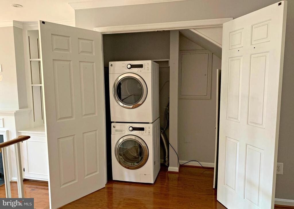 MOVE-IN READY home in a sought-after community in the heart of Old Town. The charming kitchen features a subway tile backsplash, marble countertops, and KitchenAid stainless steel appliances. Open and bright main level with a dining room that overlooks the living room, complete with a wood-burning fireplace and custom built-in shelves and cabinetry. French doors open to a private patio—perfect for relaxing or entertaining. Washer and dryer conveniently located on the main level. The upper level offers two bedrooms and two fully updated bathrooms. The primary suite includes an ensuite bath and double closets. The second bedroom also features double closets, providing ample storage. Additional highlights include one assigned underground parking space, hardwood floors, crown molding, and neutral paint colors throughout. Ideally located close to local shopping, including Trader Joe’s and Harris Teeter, just blocks from the waterfront, and surrounded by great restaurants and quaint boutique shopping.