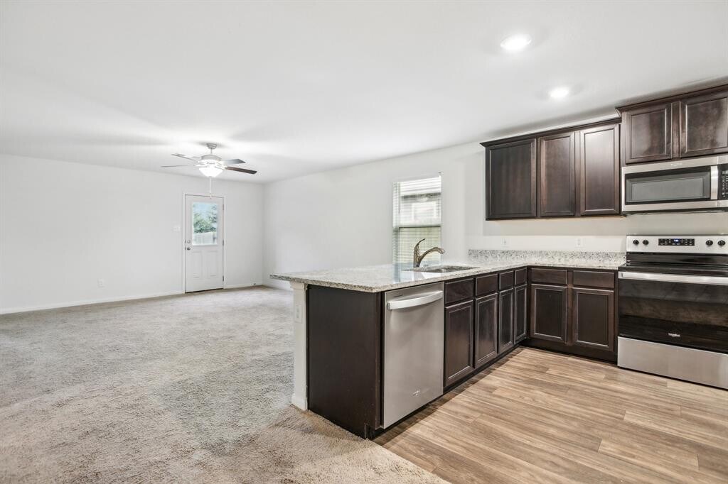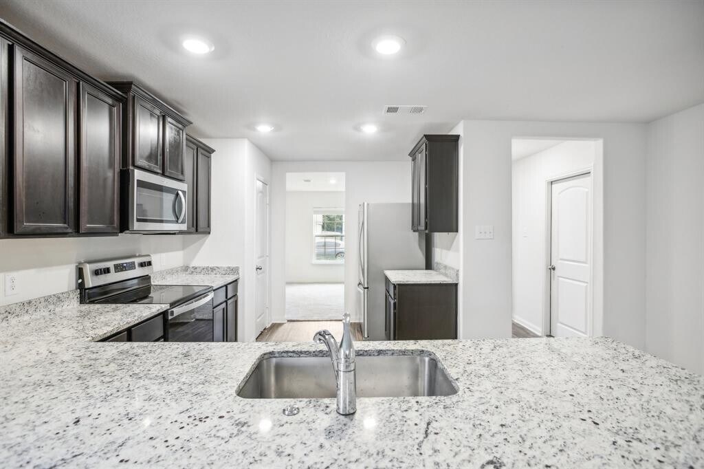 This attractive 2021 build home on an expansive lot is situated in the Stonebridge Crossing community. It offers the convenience of single-story living with ample space. This newly built home boasts 3 bedrooms plus a study, 2 bathrooms, and numerous premium features. Included upgrades such as energy-efficient kitchen appliances, granite countertops, stylish wood cabinetry, luxury vinyl-plank flooring, and an attached two-car garage enhance its appeal. Additionally, the home comes complete with a refrigerator, washer, dryer, and window blinds. Nestled on a cul-de-sac with a generous flag lot, it includes sod, landscaping, and sprinklers in the backyard. Available for immediate move in! MLS ID 5547020
