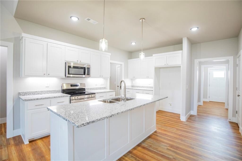 Highpointe!!! Beautiful New Construction Townhome in Pea Ridge!!! 3 bedrooms 2 1/2 baths, Master on main level. Wood style flooring throughout. Kitchen features custom cabinets, stainless appliances, granite counters, large pantry. Living room has high ceiling and is open to the kitchen and access to the back covered patio. Master bedroom includes walk in shower double sinks and large closet. Upstairs has 2 large bedrooms and 1 full bath, bonus room/office and additional storage room, garage is insulated and included an insulated garage door. Lawncare is included. MLS# 1318665