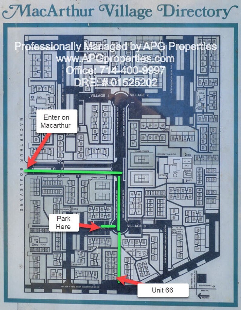 Apply now: 1 Bedroom 1 bathroom upstairs condo in the Guard Gated Macarthur Village - South Coast Metro APG Properties (DRE #01525202) Join us for an Open House to view the property on Sunday 11/09/25 from 11:30am - 1:00pm *This property is also listed For Sale* This 1-bedroom, 1-bathroom upstairs end unit condo is located in the guard-gated MacArthur Village community in South Coast Metro. The kitchen features stainless steel appliances, with a refrigerator included. Tile flooring extends through the kitchen and dining area, while ceiling fans add comfort throughout. The spacious bedroom includes a walk-in closet, and the outside balcony is shaded. The unit includes one assigned carport space located near the building. MacArthur Village offers resort-style amenities, including swimming pools, spa, tennis courts, gym, BBQ area, clubhouse, and community laundry rooms. With 24-hour security guard access, the community provides both convenience and peace of mind. Centrally located near South Coast Plaza, shopping, dining, and entertainment, with easy access to the 55, 405, and 73 freeways, this home combines comfort with a prime location. Water and Trash utilities are included NON-SMOKING UNIT $2,195 Security Deposit can be paid in two payments. This home is generally Pet Restricted, however, there may be exceptions under Federal or State law. AVOID RENTAL SCAMS - APG Properties is the property manager for the owner. This home can be viewed on our website for verification. Listings for this home from any person or entity other than APG Properties may be fraudulent. We do not advertise on Facebook, Craigslist, or any room-for-rent sites. We will not ask for cash, wire transfers, or any payments to view or hold the property. - For your security, Please do not give anyone money or sign a contract with anyone other than APG Properties. - Applications are only accepted through our website. This Property is offered by APG Properties DRE #01525202 Equal Opportunity Housing. We accept all sources of income. Please call or email Check out our website at RENTAL CRITERIA FOR APPLICANTS: Credit Score: Each Applicant must have a credit score of at least 675. No Evictions Rental History: Each Applicant should have no more than one late rent payment in the past 12 months, with verifiable rental history for the last three years, confirmed directly with landlords Employment Duration: Each Applicant must have been employed in their current position for at least 12 months Income Requirement: NET combined group income must be at least 2.5 times the monthly rent. Applicants utilizing housing vouchers must demonstrate income sufficient to meet their portion of the rent, in line with the voucher program’s guidelines. Income Verification: Income is verified through the most recent 3 months pay stubs and W-2 forms, directly confirmed with the employer. Self-employed applicants must provide At least two years of signed personal and business tax returns for verification and/or any verifiable 1099’s or K-1 forms. No Co-signers: We are not accepting cosigners at this property Complete the Pet Screening information, if you have pet(s), no pet(s), or Assistance Animal(s). The Website is Some property application requirements may vary. Please see the property posting on our website for specific information. Trash Water