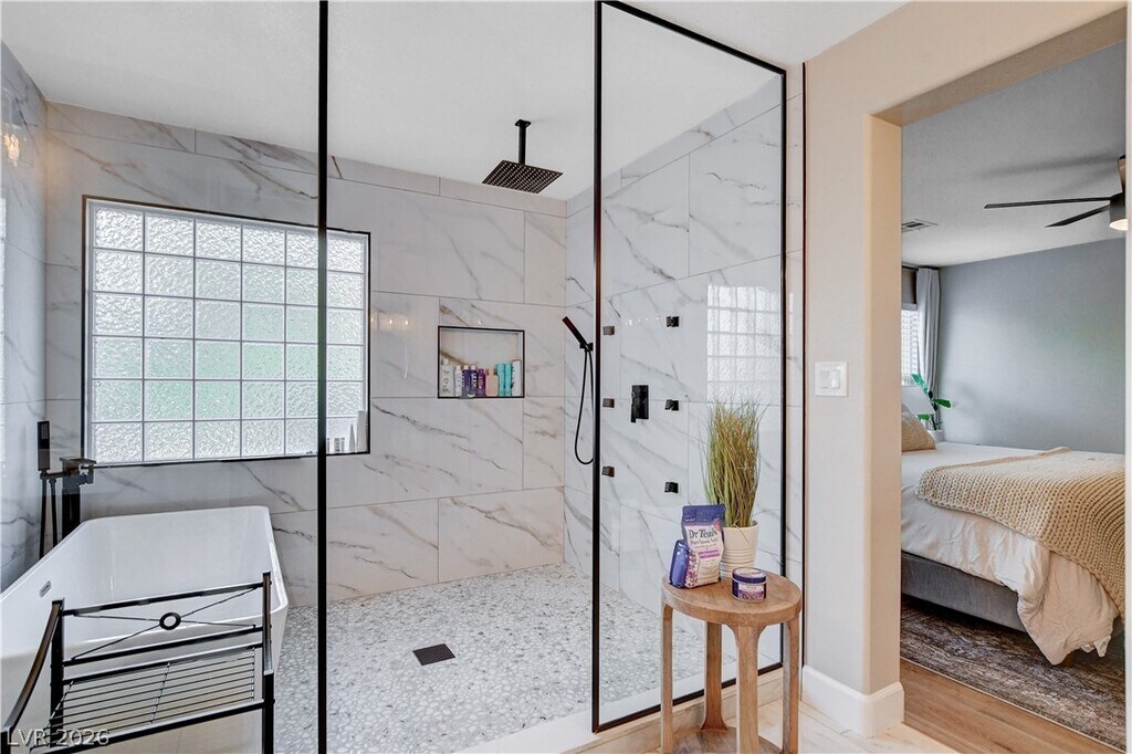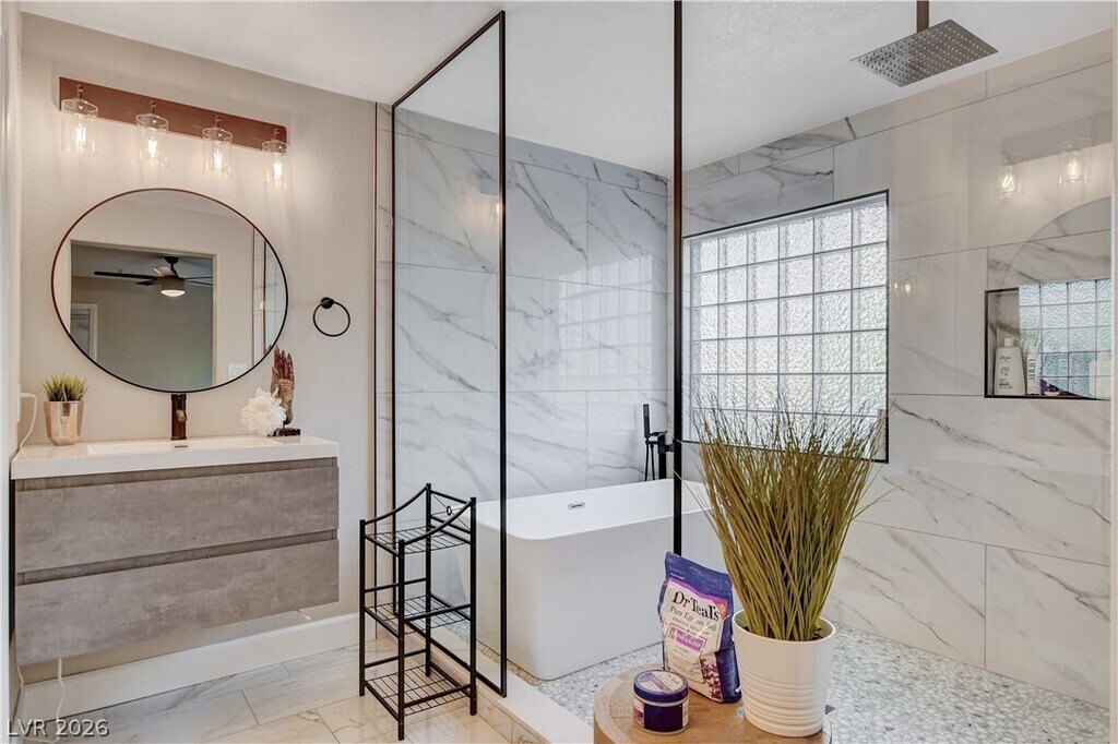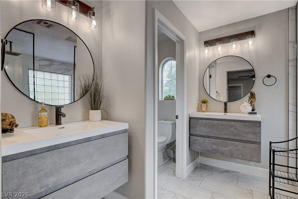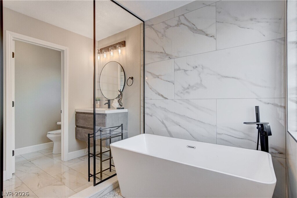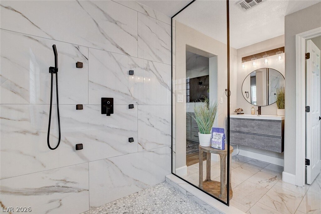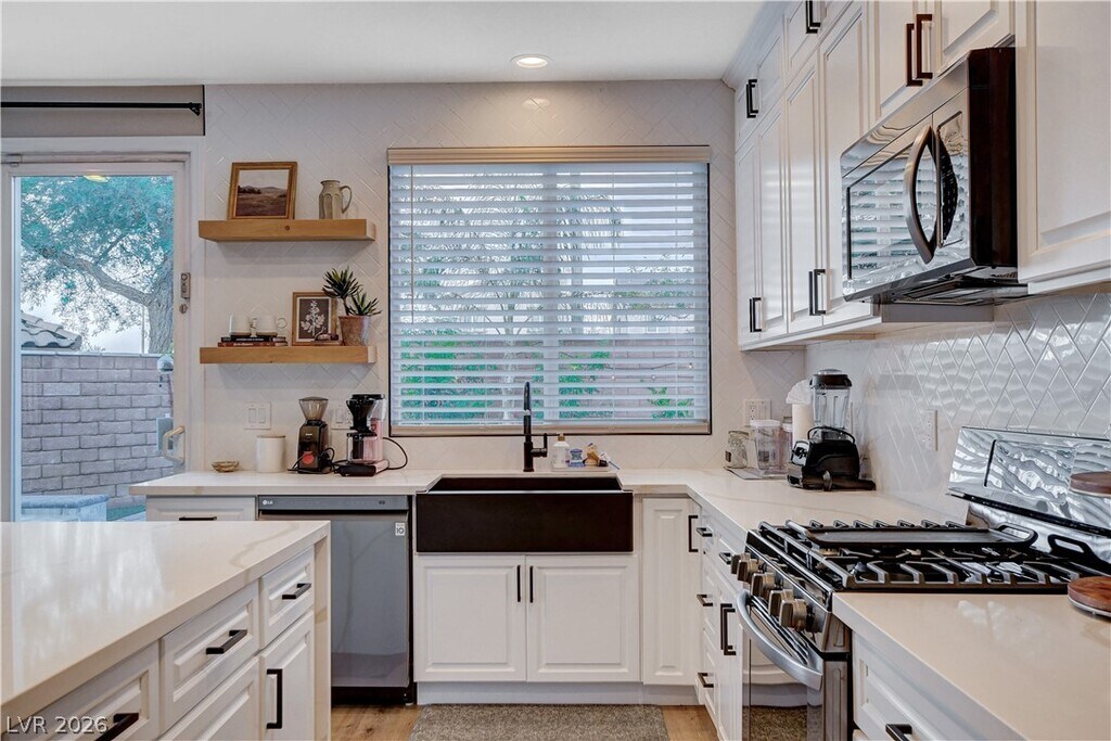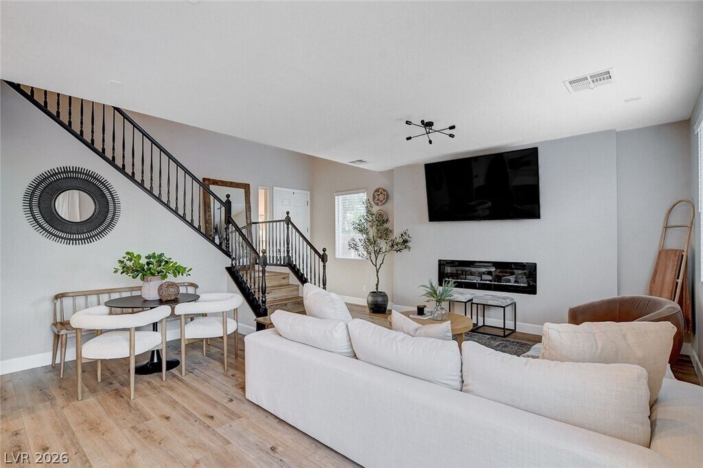 Welcome to your perfect home away from home! This fully renovated 3-bedroom, 3-bathroom oasis offers a blend of comfort, style, and convenience, making it ideal for your stay. Situated in one of the most desirable locations in the valley, this home is just a short distance from scenic trails and parks offering the perfect blend of nature and convenience. The primary bedroom is a true retreat, featuring a large walk-in closet and an en-suite bathroom with a huge shower and full soaker tub. The modern kitchen is fully equipped with top-of-the-line appliances and a walk-in pantry. Step outside to your private backyard, where a SALT WATER pool and hot tub await. The living area features a beautiful fireplace and huge smart TV. Step into this FULLY FURNISHED HOME with stylish furniture as seen in the photos, this home is ready to welcome you. Experience true luxury living in the most desirable, fastest growing area of Las Vegas.