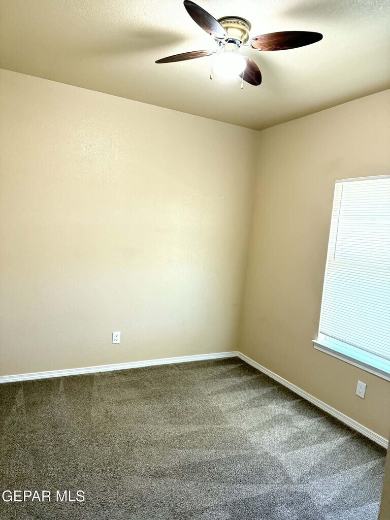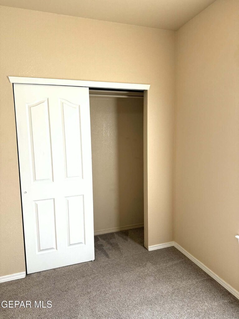 Beautiful two-story home located in a quiet cul-de-sac in a growing area of El Paso. This move-in ready property welcomes you with a tiled living space that flows into an open kitchen featuring sleek black appliances and rich brown cabinetry. Upstairs and throughout the home,bedrooms offer soft carpet flooring and spacious private closets with plenty of storage. Step outside to enjoy a low-maintenance backyard complete with attractive turf grass--perfect for relaxing or entertaining. With its location near an expanding selection of local eateries and conveniences,this home offers both comfort and convenience in one inviting package.
