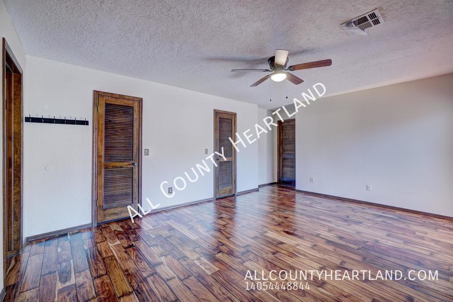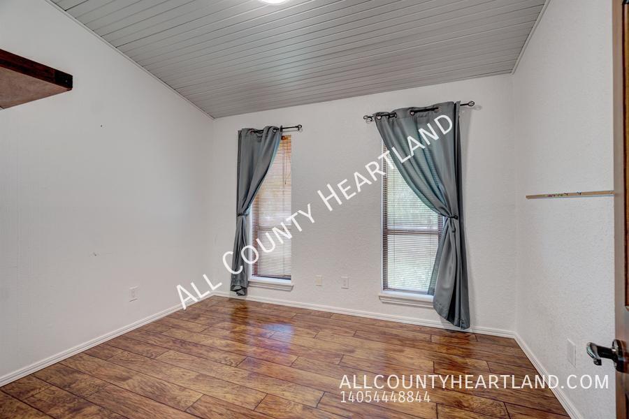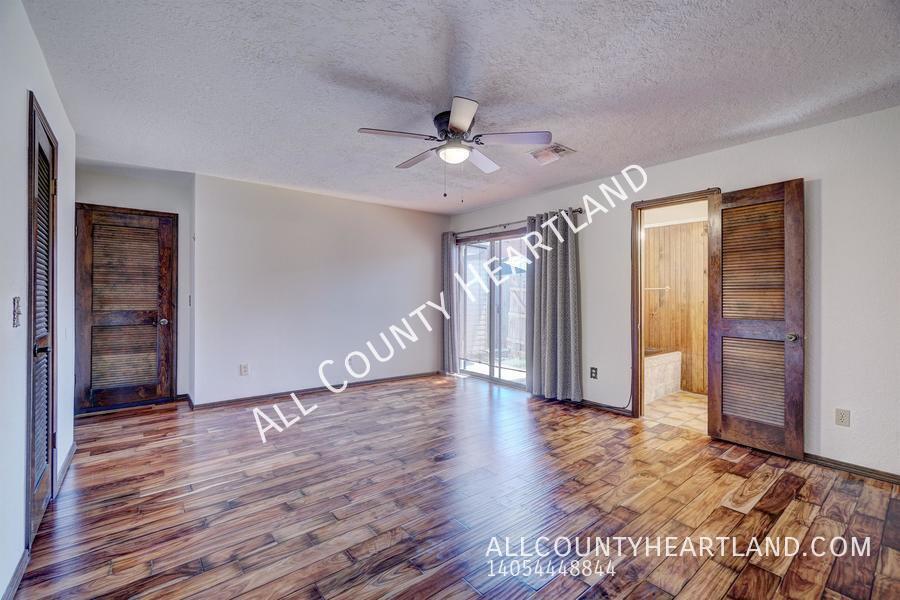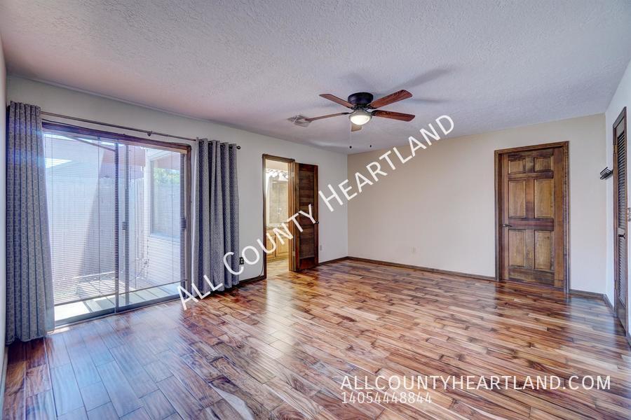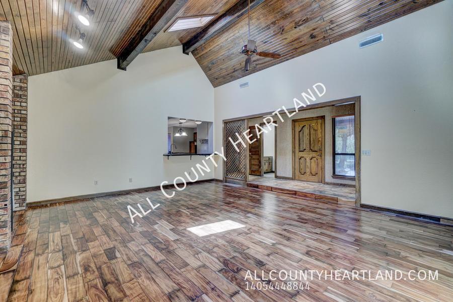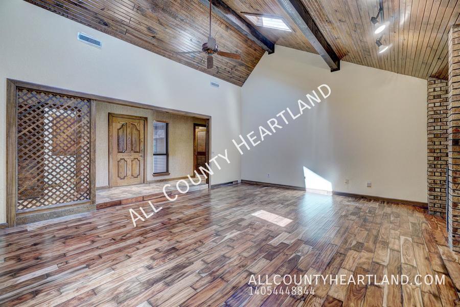 Must see this 4bed/ 2.5bath well loved home that has so much character. Large living area with fireplace and sky-light. Beautiful vaulted wood plank ceilings and new luxury wood plank flooring. Master bedroom features 2 walk-in closets, double vanity, shower & tub. Plus an office with it's own outside entrance! Spacious backyard with covered deck, sprinkler system, and wood privacy fence. Garage has lots of storage space and an in-ground storm shelter. ***As a bonus the home is equipped with solar panels, which will keep electric bills to almost nothing! Don't miss out on this amazing home. Schedule your tour today! No Smoking. Every All County Heartland Property Management residents are enrolled in the Resident Benefits Package (RBP) for an additional monthly fee which includes liability insurance, HVAC air filter delivery, on-demand pest control, and much more! More details upon application. 18 Months Lease 2 Car Garage 3 Bath 4 Bedroom Disposal Kitchen With Pass Thru Microwave Oven Storm Shelter Stove/Range Washer/Dryer Hook Up Wood Floors