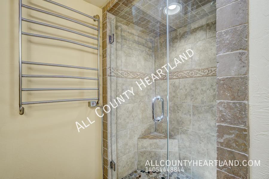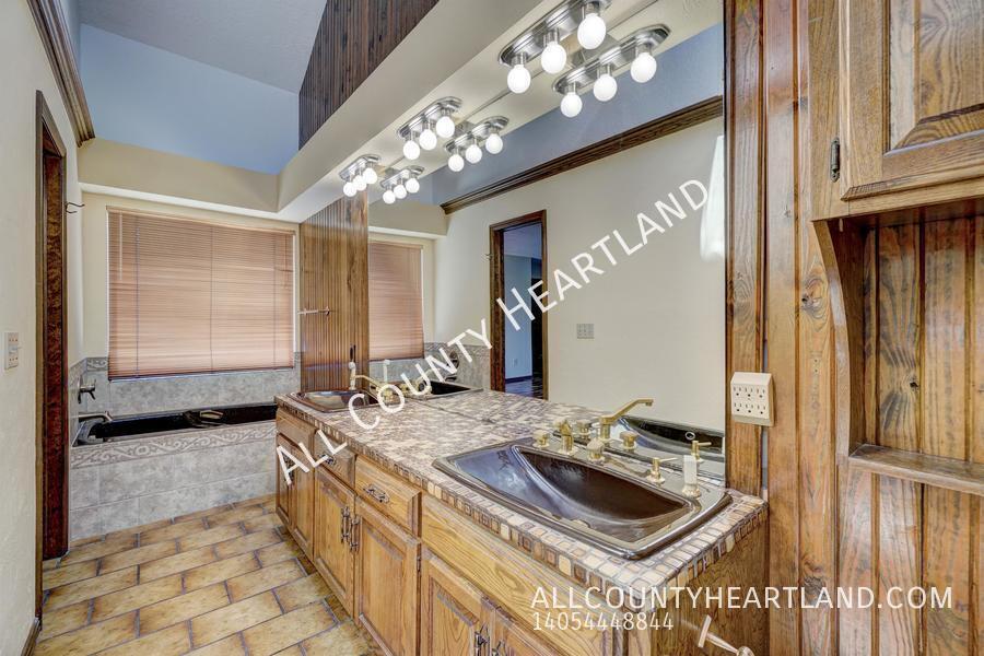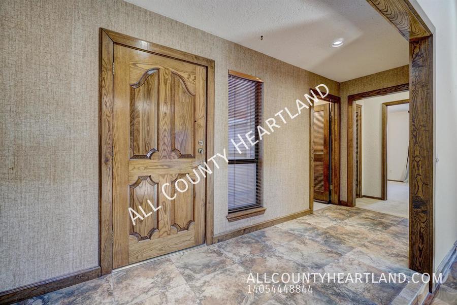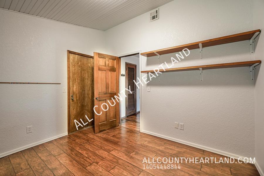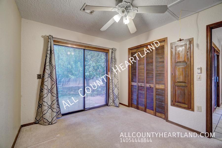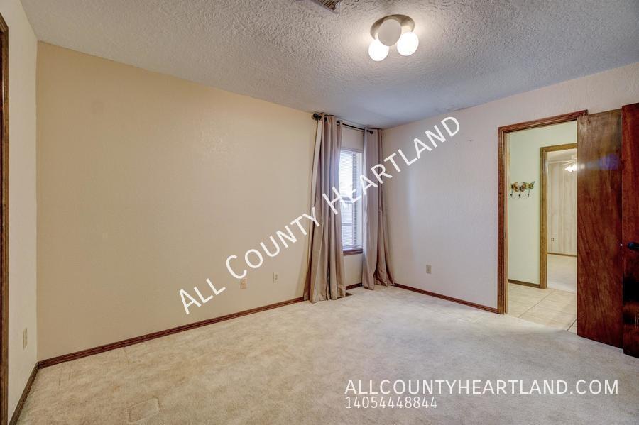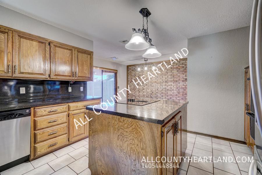Must see this 4bed/ 2.5bath well loved home that has so much character. Large living area with fireplace and sky-light. Beautiful vaulted wood plank ceilings and new luxury wood plank flooring. Master bedroom features 2 walk-in closets, double vanity, shower & tub. Plus an office with it's own outside entrance! Spacious backyard with covered deck, sprinkler system, and wood privacy fence. Garage has lots of storage space and an in-ground storm shelter. ***As a bonus the home is equipped with solar panels, which will keep electric bills to almost nothing! Don't miss out on this amazing home. Schedule your tour today! No Smoking. Every All County Heartland Property Management residents are enrolled in the Resident Benefits Package (RBP) for an additional monthly fee which includes liability insurance, HVAC air filter delivery, on-demand pest control, and much more! More details upon application. 18 Months Lease 2 Car Garage 3 Bath 4 Bedroom Disposal Kitchen With Pass Thru Microwave Oven Storm Shelter Stove/Range Washer/Dryer Hook Up Wood Floors