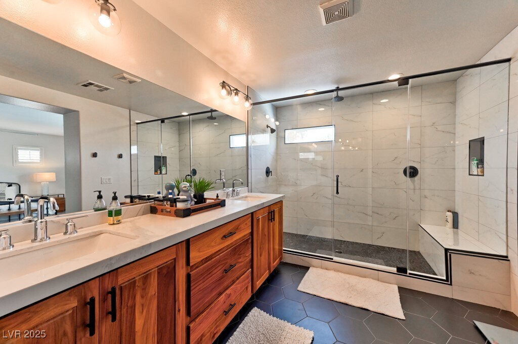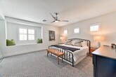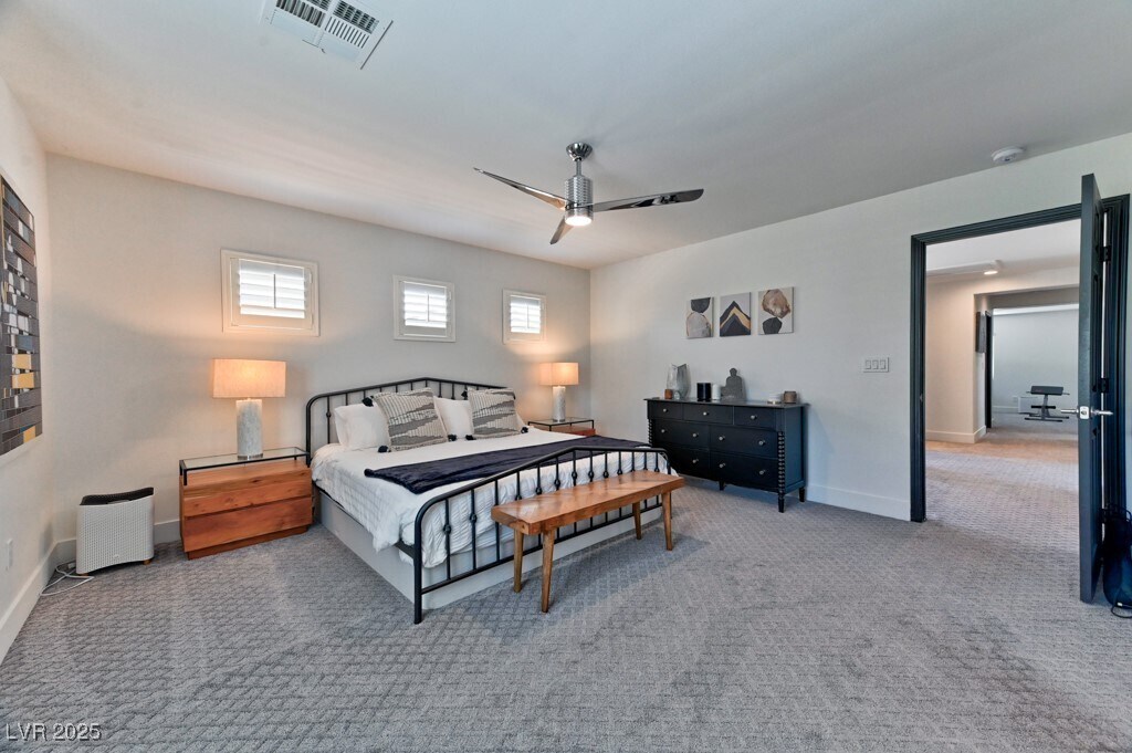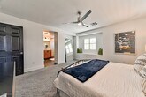 Welcome to this gorgeous open-concept cul-de-sac home in The Vistas of Summerlin, perfectly situated near Red Rock, Downtown Summerlin, parks, trails, and top-rated schools. An inviting gated courtyard greets you at the entrance, offering a warm and private welcome. Inside, the flexible downstairs den with closet can easily be converted into a fourth bedroom, paired with a convenient three-quarter bath nearby. The spacious master suite features shutters and plenty of natural light, while the kitchen showcases custom cabinetry and a sleek, modern feel. Stone tile flows throughout the main level for a clean, stylish touch. Loft is located upstairs for added living space. Step outside to your completely private backyard retreat with covered patio, stamped concrete, and built-in BBQ, perfect for entertaining or relaxing year-round. This beautiful property is offered fully furnished, making it truly move-in ready and ideal as a turnkey rental.