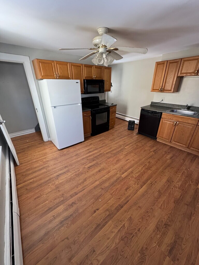 Welcome to this charming and spacious 3-bedroom, 1.5-bathroom duplex in the heart of Stroudsburg! This home boasts an inviting eat-in kitchen with updated cabinetry and modern appliances, flowing seamlessly into the formal dining room and family room ideal for gatherings and cozy family moments. Freshly painted walls and ample windows bring warmth and abundant natural light into every room. Upstairs, discover three generously sized bedrooms with ample closet space, including a unique third bedroom with a private entrance from the kitchen. Ceiling fans throughout add comfort and convenience. Outside, enjoy a lovely covered front porch, a back storage area, and a shared backyard perfect for relaxing or entertaining. Garage included, plenty of room for a vehicle and storage. Situated across from Stroudsburg High School and within walking distance to shopping, dining, and local parks, this home is as convenient as it is delightful! Don't miss this exceptional opportunity! Tenant is responsible for water, sewer, electric and oil heat. Owner pays Trash. Pets are negotiable.