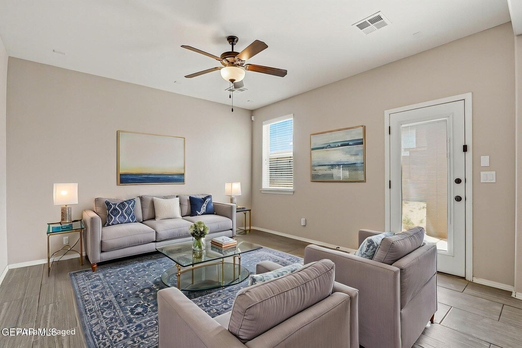 Beautiful corner lot two story home with 4 bedrooms and 3 living areas. Formal sitting area or office as you walk in. Open floorpan with ceramic tile in main areas,carpet in bedrooms. All bedrooms plus loft upstairs,laundry room also conveniently located on second floor. Upstairs bathrooms offer granite counter tops & beautiful framed mirror. Spacious and modern kitchen with lots of cabinets,ample granite counter space,island & pantry,all kitchen appliances included. 2 car garage with opener. Good size yard,wood privacy fence,extended cement area & canopy with independent electricity lighting - perfect to enjoy summer nights! This home has solar panels - in addition to the monthly rent tenant will pay a flat fee of $200 dlls to cover the electricity usage,this service will remain under the landlord's name for the term of the lease. Easy access to main highways,close to schools,parks and entertainment! AVAILABLE 03/01/2026.
