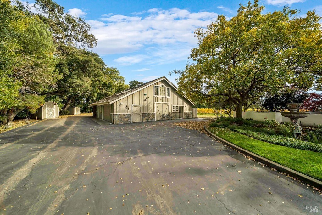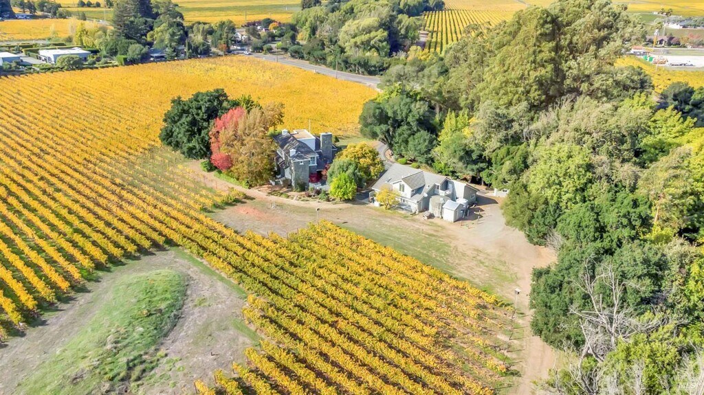 Welcome home to this stunning, private vineyard estate where luxury and tranquility meet. Nestled among rolling vines and bordered by a picturesque creek, this thoughtfully designed home offers sweeping vineyard views from nearly every room. A long private driveway leads to the 4000 square foot home, three-car garage, large utility room, and a one-bedroom apartment above the garage, ideal for guests or extended family. Inside, soaring cathedral ceilings, a custom wood staircase, and a formal dining room with a modern chandelier set the tone for elegant living. The chef's kitchen features a large island, Sub-Zero refrigerator, double ovens, and a telescopic downdraft cooktop. Additionally on the main level are two bedrooms, an office, wine collection room, and laundry room. Upstairs, the primary suite boasts a fireplace, wet bar, private patio, spa-like bathroom with jacuzzi tub, and a massive walk-in closet. Enjoy sunsets from the back patio while overlooking the vineyard. Experience the best of Napa Valley living in this exceptional, one-of-a-kind estate. MLS#325099805
