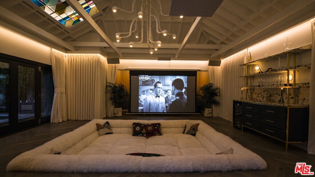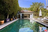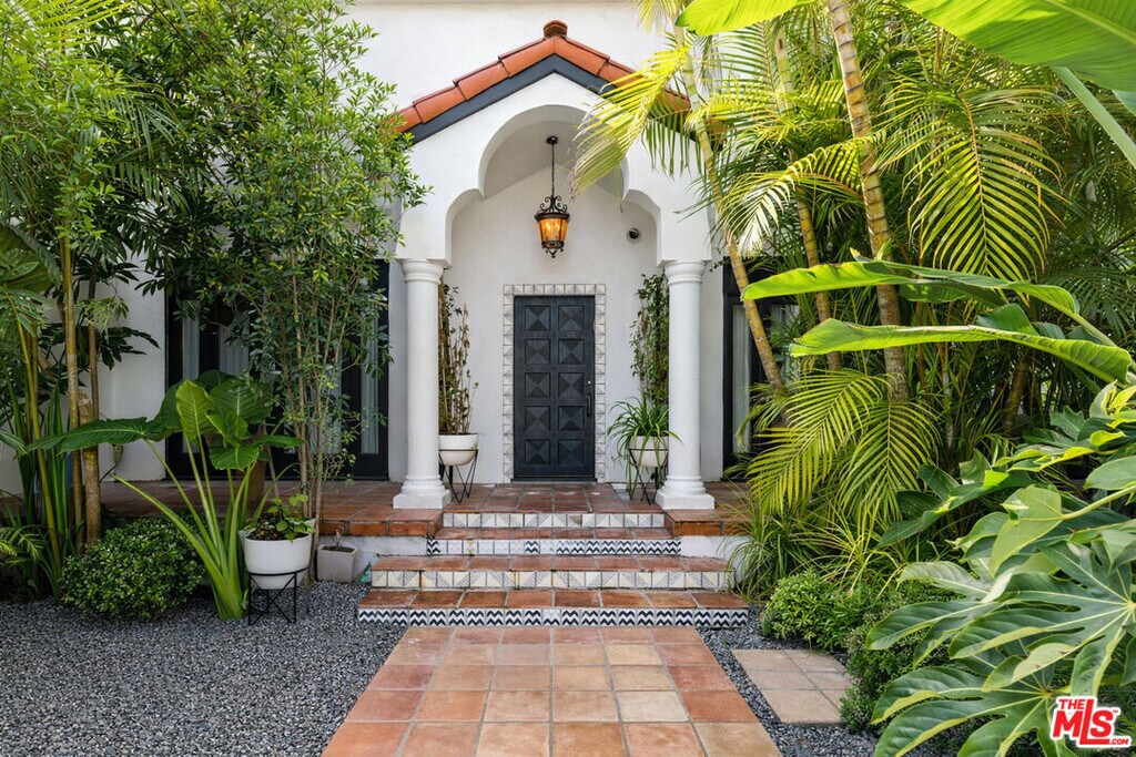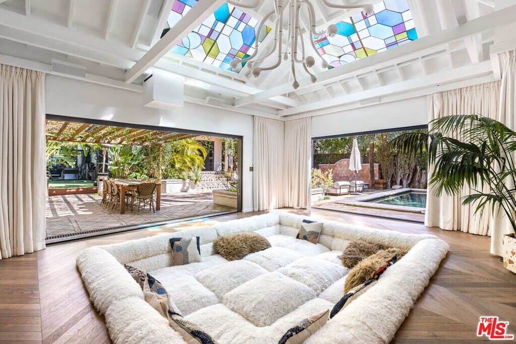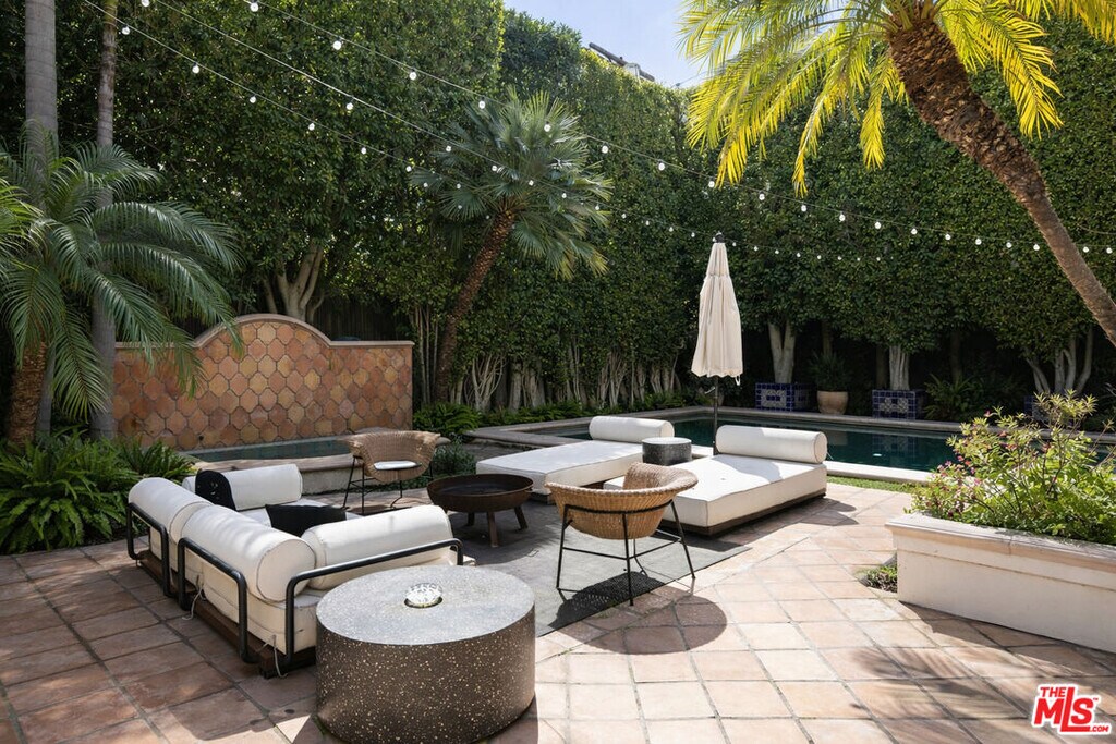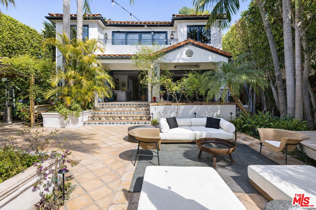 A rare offering on one of the best streets in the West Hollywood area, this contemporary Spanish-style home delivers the full package: pool, spa, detached guest house, gated entry, high-end security system, and seamless indoor-outdoor living. The main level features an open living and dining layout, gourmet island kitchen with Viking appliances, step-down bar, separate office with fireplace, and an en-suite guest bedroom. Walls of glass open to a private, resort-style backyard with heated pool, spa, trellised dining patio, and an incredible detached cabana/guest house complete with sunken lounge seating, projector, bar, wine fridge, and vaulted ceilings with stained-glass skylights.Upstairs, all bedrooms are en-suite including two luxurious primary suites with fireplaces, balconies, spa-inspired baths, and walk-in closets. A true entertainer's retreat offering privacy, style, and exceptional flow. MLS# 26636881