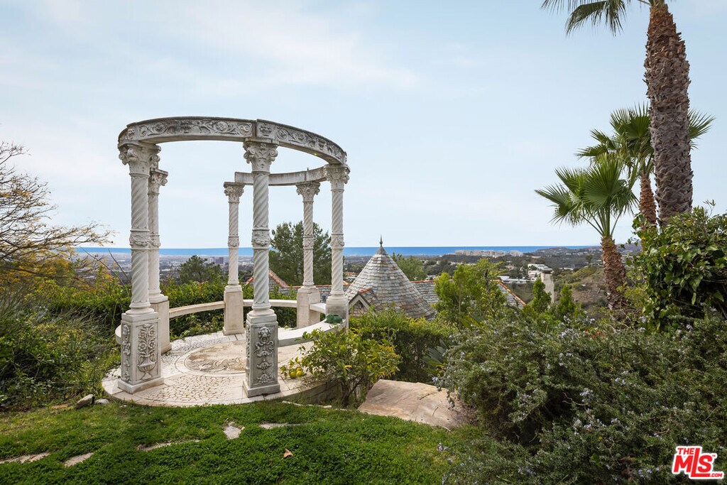 Perched atop a significant vantage point in Bel Air, this enchanted French Castle style estate boasts grand aesthetics, sweeping views over West Los Angeles, and a spacious flow which absorbs large parties of family and friends effortlessly.Entering the home, a spiral staircase and cathedral-like ceiling frames a grand hallway, which unfolds into multiple living rooms, a massive kitchen and world class views. Descending the hillside property into the outdoor area, one finds a gazebo overlooking the Getty Center, a stunning pool, a long cobblestone driveway and a spacious 1,500 square foot guest house with a loft, a kitchen, high ceilings and ample natural light. Bedrooms are spacious, warm, and feature en suite bathrooms and ample closet space. Primary suite features best-in-class views and a unique loft perfect for a home office or workout area. Excellent layout with thoughtful use of square footage. This estate executes flawlessly on its countryside aesthetic and fills all who enter with a nostalgic sense of joy and wonder. Minimum 13-month lease term. MLS# 25594259