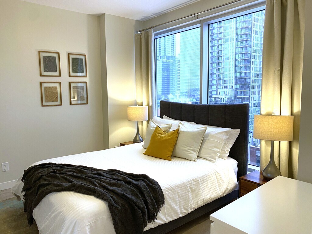 Stunning Fully Furnished 1 Bedroom Condo in the Heart of Downtown Edmonton With Underground Stall Included! Live in the vibrant heart of downtown Edmonton in this luxurious 1-bedroom, 1-bathroom suite located just steps from Rogers Place, summer markets, nightlife, and Edmonton's business core. Perfectly designed for both relaxation and entertaining, this modern suite offers everything you need for a convenient, stylish lifestyle. Key features of this fully furnished condo: - Ultra-modern kitchen with high end cabinetry, soft-close cupboards, and a spacious kitchen island that faces the dining area—ideal for entertaining guests - Bright and airy living space with large windows that fill the unit with natural light, creating a welcoming and open atmosphere - Generously sized bedroom with walk-in closet, offering ample storage - Air conditioning to keep you cool during the summer months - In-suite laundry for the ultimate convenience - Large balcony with amazing views Additional Feature Included With Rent: -One underground parking stall, all utilities plus Wi-Fi Small dogs welcome with approval and fee. Located on the 11th floor of the modern Fox Tower, offering amazing city views and a premium urban living experience Enjoy all the best that downtown Edmonton has to offer—whether you're catching a game at Rogers Place, exploring local markets, or indulging in the lively nightlife. This fully furnished suite offers luxury, style, and location in one package. Welcome to Edmontons beautiful Ice district. These fully furnished units have everything you can ask for! Live minutes away from Rogers place, farmers market and tons of restaurants and shops!