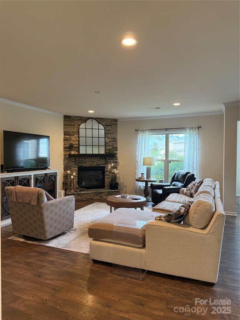Beautiful rental in the lovely lakefront community of Chapel Cove!! Spacious 1st floor bedroom suite,luxury vinyl floors,throughout,oversized gourmet kitchen with breakfast area,center island with seating,a beautiful bumped-out sunroom and family room with fireplace to finish the 1st floor. Upstairs features the primary suite,3 more bedrooms with 2 more full bathrooms,oversized laundry room and sun filled loft. Chapel Cove is a lakefront community that offers an outdoor pool,kayak lake access,basketball and tennis courts!