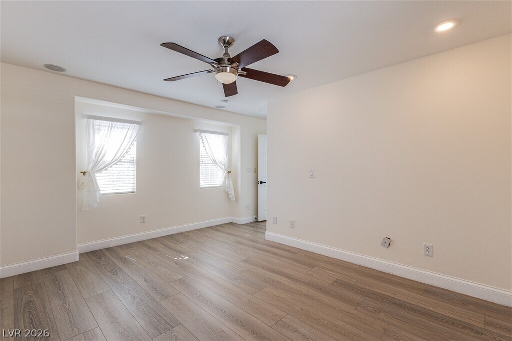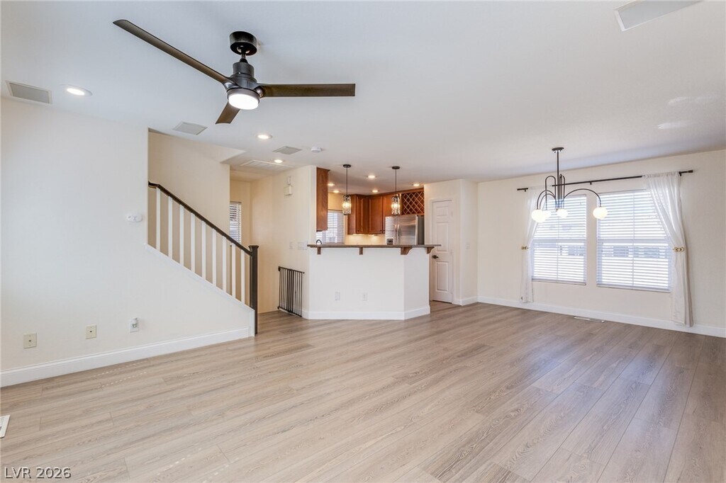 Located in the highly desirable community of Mountain’s Edge, this bright 3-story home sits on a cul-de-sac & offers modern living at its finest! Featuring 3 bedrooms, 3 baths & a versatile den, this home showcases beautiful finishes throughout, including luxury vinyl plank flooring & NO CARPET! The first level welcomes with an entry foyer, a den, laundry room, & direct garage access. On the second level, you’ll find a spacious family room & a stylish kitchen equipped with SS appliances, granite countertops, a pantry and a dedicated dining / nook area. Step out onto the balcony to enjoy your morning coffee or tea. This level includes a guest bedroom & a full bathroom. The third level features dual primary suites, each with modern finishes & abundant natural light, offering comfort & privacy. Outside, enjoy a cozy backyard space perfect for relaxing or entertaining. Situated in a gated community with a park & playground, this pet-friendly home is move-in ready! Landscape included!