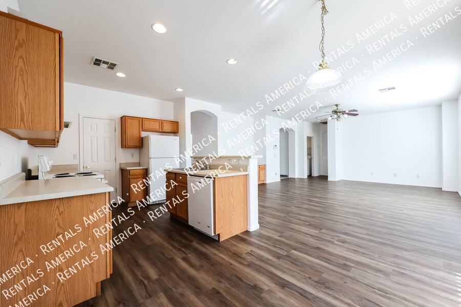 This 3 bedroom 2 bath features an open living room floor plan, dining area, breakfast bar, split floor plan, private toilet room in master, walk in closet, huge back yard with covered patio! Featuring new vinyl plank flooring throughout! One Time Admin Fee: $300, Pet Deposit: $300/pet (if applicable), Service Fee: 2%. $39/month Resident Benefits Package, Helping Heroes Discount Available! Cats Allowed Disposal Dogs Allowed Dryer Garage Pets Allowed Vinyl Washer