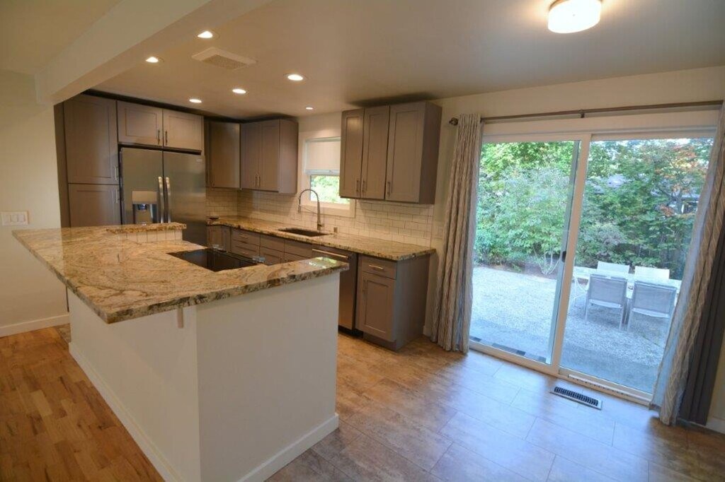 This fully renovated. single level rambler/ranch home is situated at the end of a tranquil cul-de-sac, offering a quiet living environment. All surfaces in the home have been fully renewed. The great room concept features a cooking island with a bar, providing a view of the front yard through newly installed, large windows. The kitchen boasts granite countertops, ample cabinet and storage space, and recently updated stainless steel appliances. The bathroom has been elegantly updated with new lighting, tub, toilet, and sink. The three bedrooms feature refinished hardwood floors, recent paint, new windows, and doors. Energy-efficient LED lighting throughout the home. The property is equipped with forced air gas heating and a cozy gas fireplace in the living room. The attached 480 sq ft two-car garage is well-lit and offers abundant storage with existing shelving, a workbench, and an exterior door leading to the backyard. An additional refrigerator available, and the garage is provisioned for electric vehicle charging if desired. The expansive 8,600+ sq ft lot features mature landscaping and ample sunny yard space on three sides of the home. For gardening enthusiasts, there are several gardens and raised beds suitable for flowers or vegetables. There is also potential for RV parking adjacent to the driveway. The location is convenient to several major employers. Cats are welcome, and dogs are considered on a case-by-case basis. 15 min to google 20 minutes to Microsoft 15 minutes to Costco 5 min to I-405 and park & ride 5 min to household amenities, restaurants and shops 10 min to Juanita beach park Lake Washington school district Turnkey. quiet, comfortable home. Cats ok, dogs on case-by-case basis. Please contact the Property Manager at , or by email at , to schedule a showing or with questions. Move in funds required are first month’s rent and refundable security deposit. Screening fees are $60.00 per adult 18 years and older. Please speak with property manager at prior to your application.