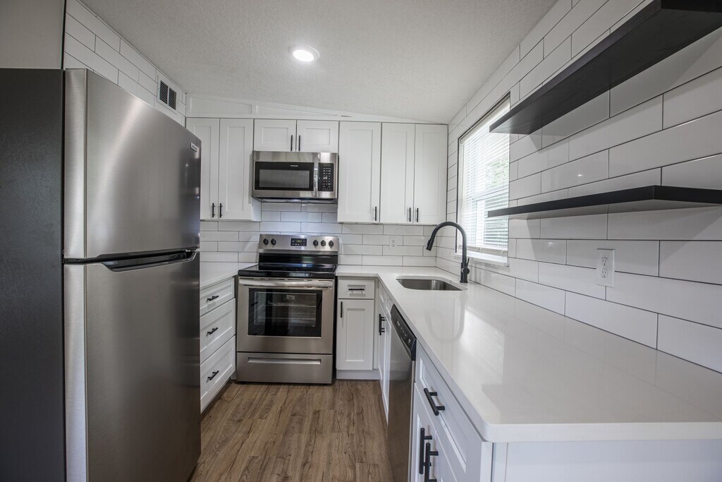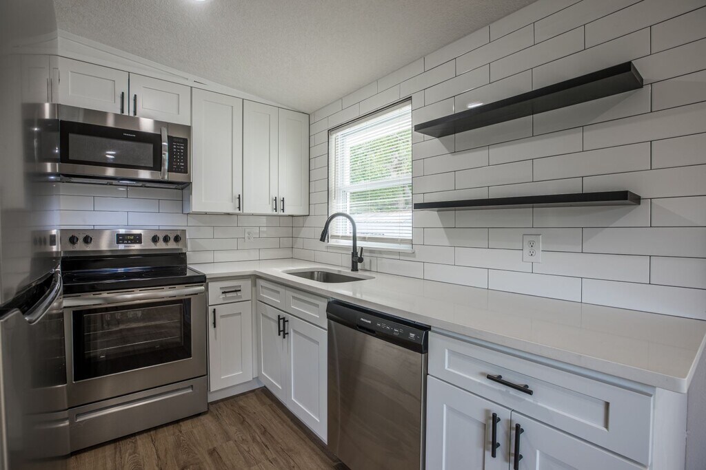 Separate dining room. Renovated 4/2, new SS appliances, new kitchen, new bathrooms, new flooring, newly painted, washer & dryer included. Close to regency, 9A, St Johns Town center
