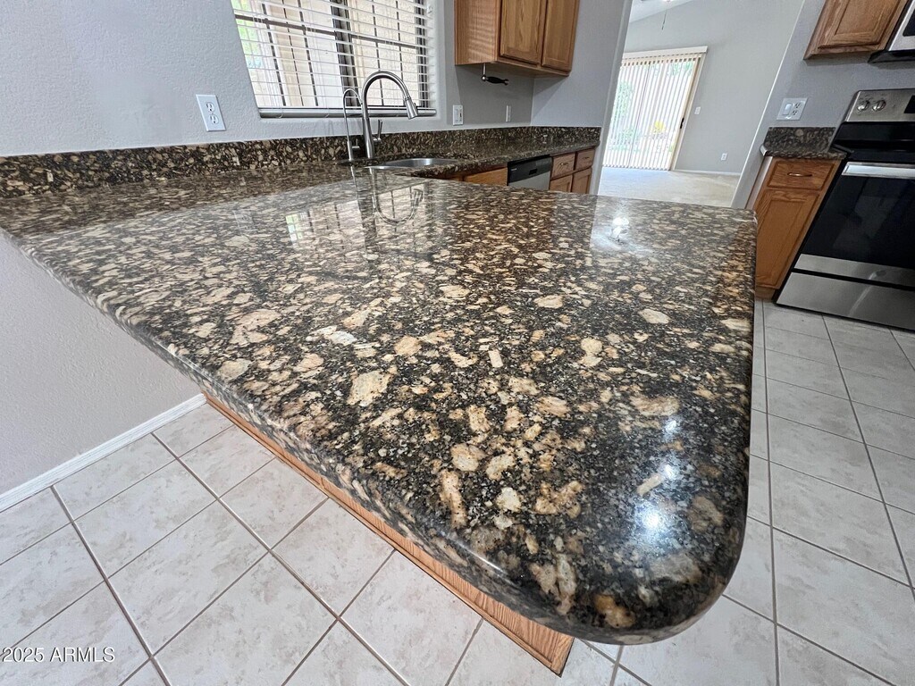 ALL NEWER PAINT THROUGHOUT,NEWER AC! ALL APPLIANCES INCLUDED,SOLOR TO REDUCE ELECTIC COSTS!! This is a beautiful 3-bedroom residence nestled in Saguaro Ranch. You're greeted by an inviting living area offering bountiful natural light,vaulted ceilings,and designer palette. The fabulous eat-in kitchen boasts sleek granite counters,newer stainless steel appliances,wood cabinets,a pantry,and a peninsula complete with a breakfast bar. The master suite showcases a generously sized closet and a private bathroom for added comfort. Enjoy relaxing on sunny afternoons in the harmonious backyard featuring a covered patio,a manicured landscape,a cozy firepit,and a charming stone waterfall! Don't miss out on this one! New water heater,new R/O system & water softener,& new garage door!