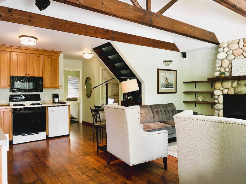 Property Id: 2125368 FULLY FURNISHED 1 Bedroom - 1 Bath Apartment **All Utilities included** **Weekly Housekeeping Incuded** **Available November 15, 2025** Escape to tranquility while staying close to everything Napa has to offer. The Creekside Loft is a beautifully furnished one-bedroom, one-bath apartment perched above a private barn-style workshop, just a 5-minute drive from downtown Napa. This standalone apartment is located on a private one-acre property, separate from the main house, with its own private entrance and amenities. This peaceful and private unit offers stunning views of green trees and sits above a creek. Green trees are visible from every window and the spacious wood deck. Inside, enjoy pitched ceilings with wood beams and gas fireplace in a thoughtfully designed layout.