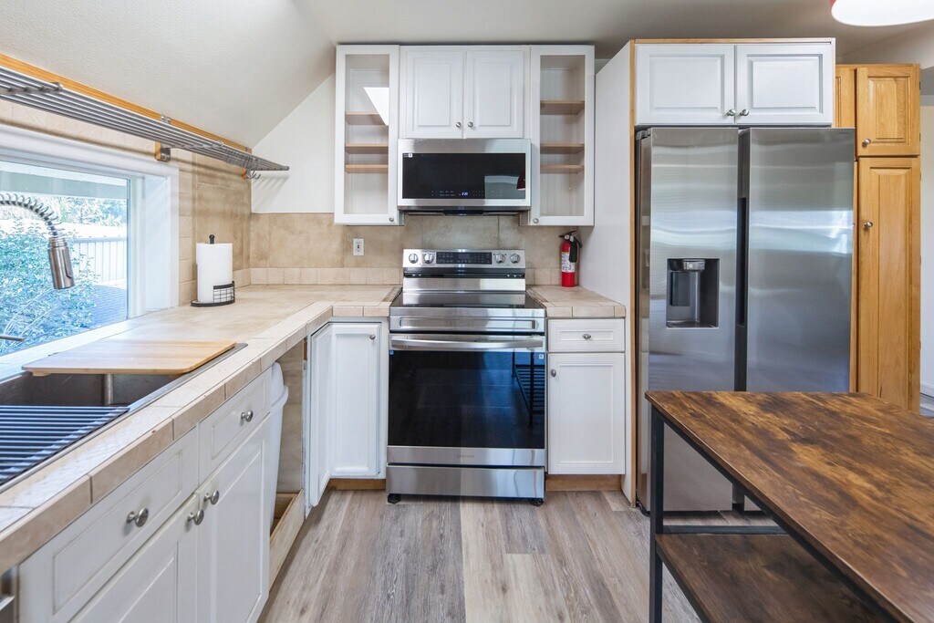 Discover a spacious riverfront rental in Seattle's South Park neighborhood: a 2-bed, 2-bath duplex with over 1,600 sq ft of living space. This upper 1½-story home offers a private entrance, off-street parking, and two outdoor decks. Each deck offers a view ithe Duwamish River while a view from the 3rd floor features a stunning Mt. Rainier view. The living room features a cozy gas fireplace, built-in bookcases, and abundant natural light. The kitchen has been fully updated with stainless steel appliances, a new sink, and new flooring, and flows seamlessly into the dining area. Upstairs, the second bedroom has a view of the southern industrial Seattle skyline and an adjacent office or flex space that is ideal for remote work. The primary suite includes an ensuite bath, walk-in closet, and direct deck access. In-unit laundry with brand-new washer and dryer included. Enjoy pet-friendly living (pets welcome with deposit) in a walkable neighborhood close to shops and dining on 14th Ave S, with quick access to I-5, Hwy 99, and downtown Seattle. Metro transit is just an 8-minute walk away, and outdoor enthusiasts will love kayaking or relaxing at Duwamish Waterway Park down the block.
