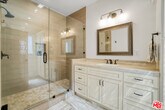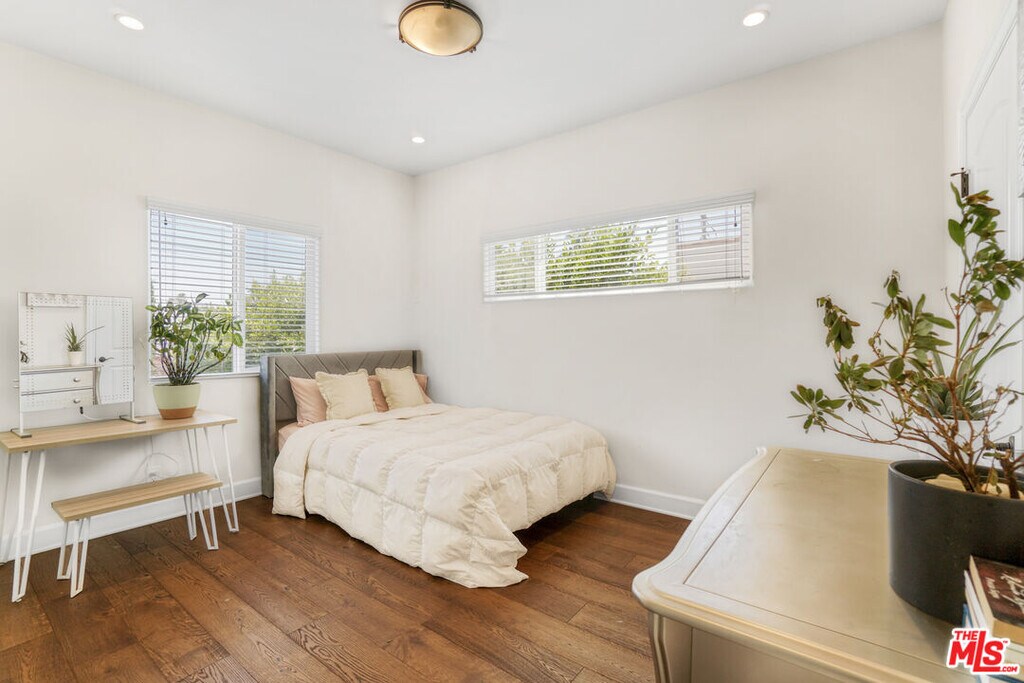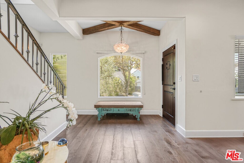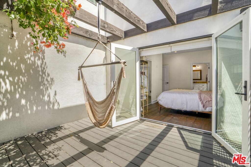 Stunning Spanish Contemporary Home for Lease in Prime Miracle Mile Location. Welcome to this beautifully updated Spanish Contemporary home nestled in a quiet, family-friendly neighborhood in the heart of Miracle Mile. Just steps away from the Petersen Automotive Museum, LACMA, Grammy Museum, and a short 5-minute drive to The Grove and some of the best restaurants in Los Angeles. Only 10 minutes from Beverly Hills and Century City Mall, this location offers unbeatable convenience with a touch of culture and luxury. This spacious and stylish home features an open-concept living area with coved ceilings, exposed beams, walnut-stained hardwood floors, and designer light fixtures throughout. The brand-new chef's kitchen is outfitted with sleek stainless steel appliances, designer stone countertops, and seamlessly opens to the living and dining roomsideal for entertaining. Bi-fold doors in the living room lead directly to a serene backyard oasis.The first floor offers a generous bedroom with en suite bath and a private balcony overlooking the front yard, plus a convenient powder room for guests. Upstairs, a wide hallway leads to three additional spacious bedrooms, each with its own en suite bathroom, along with a separate laundry room. The luxurious primary suite boasts a walk-in closet with custom barn door and private balcony. The spa-like primary bath features designer finishes, a freestanding soaking tub, and a separate walk-in shower. Step outside to enjoy true California livingrelax in the saltwater pool and spa, unwind in your private sauna, or spend quality time with the family at the on-site playground for kids. This is a rare opportunity to lease a high-end, thoughtfully designed home in one of LA's most vibrant and walkable neighborhoods. MLS# 25575775