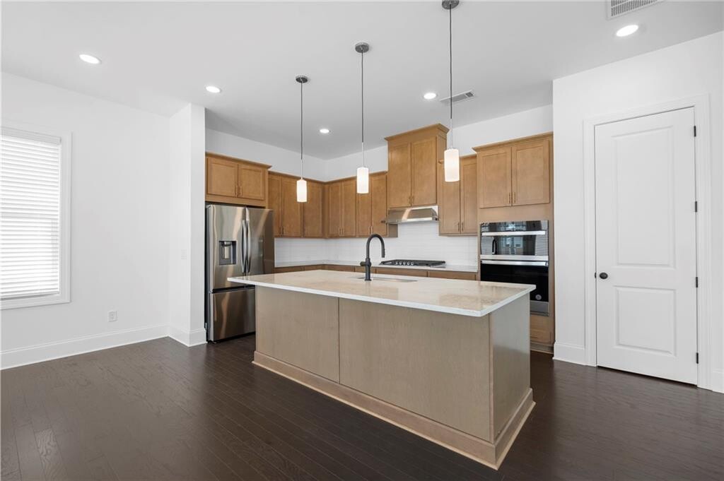 Welcome to this stunning,BRAND-NEW — NEVER LIVED IN home featuring a spacious and versatile floor plan designed for comfortable and sophisticated living. The main level boasts beautiful hardwood floors,high ceilings,and elegant custom trim and moulding throughout. An expansive chef’s kitchen with quartz countertops,a large island bar,stainless steel appliances,and a designer backsplash opens to a bright and inviting great room centered around a cozy fireplace. A bedroom and full bathroom on the main level offer convenience and flexibility for guests or multigenerational living. Additional spaces include a formal dining room,mudroom,and a laundry room with sink for added functionality. The second floor features a stunning primary suite with serene lake views,his-and-hers closets with custom built-ins,and a luxurious spa-style bathroom complete with an oversized shower,dual vanities,and a soaking tub. This level also includes two additional bedrooms,a secondary full bathroom,and a spacious loft area perfect for a secondary living space or playroom. The third floor offers incredible versatility with a large loft and bonus office space,along with an additional bedroom and full bathroom,ideal for guests,a home office,or a private retreat. Enjoy tranquil lake views from the upper level or unwind on the covered patio,where natural light floods every corner of the home. Located in the sought-after Great Sky community,this property provides access to two pools,pickleball courts,a playground,and more! This is all just minutes from top-rated schools,shops,and restaurants.