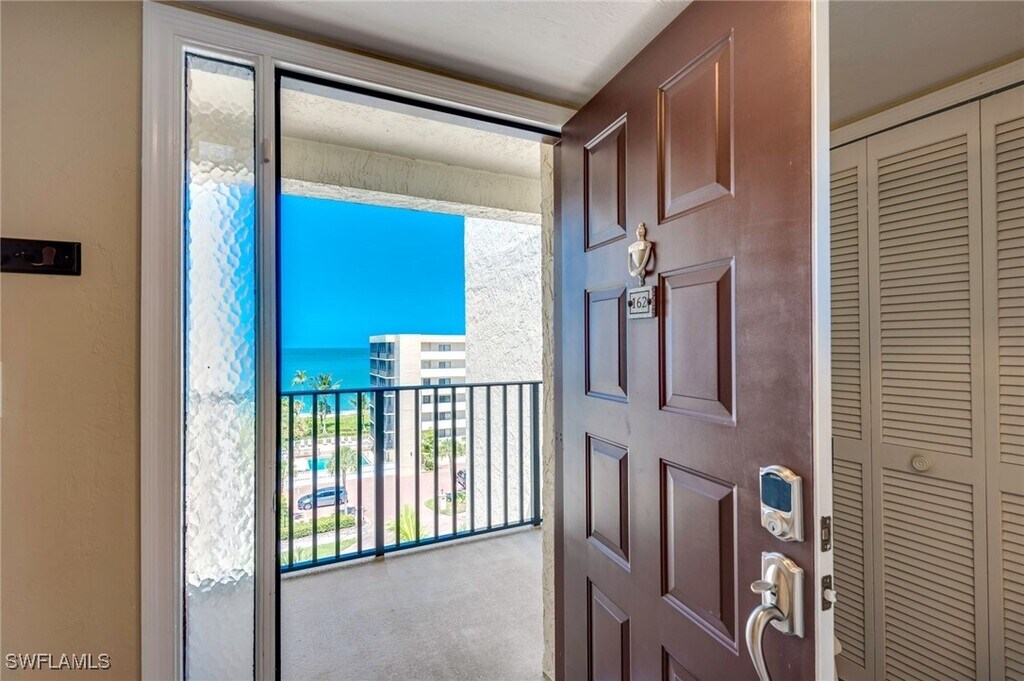 AVAILABLE Dec 2025 & March 2026! Top floor condo with sweeping bay and skyline views. Views of the Gulf of Mexico from your front door. Updated with an open kitchen and great room,AND a covered parking space. Tasteful finishes throughout and 7 panels of floor-to-ceiling impact sliding glass doors. Natural light in all rooms. This layout offers a 35-foot-wide lanai. Separate laundry room in unit. Tile through entire residence and lanai. Vanderbilt Bay has a private gated beach walk just across the street. Expansive gulf views from the front of the building are breathtaking. Walk to the beach,Wiggins State Park,La Playa and several dining spots.