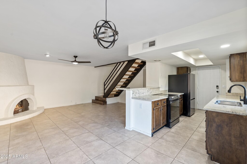 Welcome to Pointe Tapatio,where comfort meets convenience. Enjoy a resort-style community w 4 heated pools,a relaxing spa,and a dog park! Plus water,sewer,trash,and cable included in the rent! This updated end unit offers a bright,open feel with mountain views,a wood-burning beehive fireplace,and new windows/plantation shutters. The modern kitchen features freshly stained cabinets,granite countertops,stainless steel appliances,pantry space,and a cozy breakfast bar. Upstairs,you'll find two spacious bedrooms with plenty of closet space and wood-like flooring for easy maintenance. The bathroom is completely remodeled with a tiled shower/tub combo and a custom vanity. Enjoy direct access from your covered carport + a dedicated laundry room. New AC system ensures year-round comfort. Conveniently located near shopping,dining,and scenic walking trails; this one is move-in ready and won't last long!