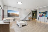 Spectacular Townhome in a Golf Cart-Friendly Community with A-Rated Schools! Welcome to this move-in ready home,located in one of the most desirable communities in Central Florida! This property has been completely renovated with modern finishes and offers a prime location. Located in an A-rated school zone,with the elementary school located within the condominium itself Golf cart-friendly community Steps from Publix and minutes from Walmart,ALDI,Sam's Club,restaurants,and shops Travertine-paved backyard,ideal for enjoying with family and friends Custom-designed office with modern millwork and LED lighting High-quality vinyl flooring in the living room and office Bright,open living room with built-ins,recessed lighting,and paneled accents Large,functional kitchen cabinetry with a breakfast bar Remodeled master bathroom with an overhead rain shower and elegant finishes Custom walk-in closet in the master bedroom Completely renovated half bathroom with modern design Plantation shutters throughout the home Upstairs laundry room with high-end appliances This property has been lovingly maintained and tastefully upgraded. It's ideal for both families seeking quality of life and those working from home who want a comfortable and stylish space. Don't miss the opportunity to live in a safe,walkable community with golf cart access,close to everything you need. Schedule your private showing today! MLS# O6336548