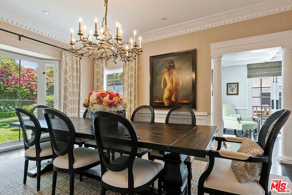 Monterey Colonial masterpiece in prestigious Little Holmby, fully furnished and available for lease at $40,000/month. This 5 bedroom estate blends 1930s architectural charm with modern luxury, meticulously restored by renowned designer Laurence Roberts. Grand formal entry opens to an elegant living room with fireplace and French doors leading to lush gardens and covered patios. A sunlit dining room, paneled den, and chef's kitchen with Sub-Zero, Wolf, and Miele appliances complete the main floor, flowing seamlessly into a spacious family room. Upstairs, four en suite bedrooms include a luxurious primary suite with spa-like bath, soaking tub, sitting area, and walk-in closet. A guest suite is privately located on the main level. Period details aboundinlaid hardwood floors, crown moldings, arched doorways, and wrought iron accents. Outdoor amenities include a resort-style pool and pavilion with outdoor shower and full bath, hillside-view deck with fireplace, al fresco kitchen and BBQ area, multiple patios, grassy yard, and gated 2-car parking. Tech-forward and security-enhanced with Sonos sound, cameras, alarm, zoned HVAC, mesh WiFi, and weekly housekeeping and pool service included. Located near UCLA, Beverly Hills, and in the Warner Elementary district, this timeless estate offers elegance, comfort, and turnkey living in one of L.A.'s most sought-after enclaves. MLS# 25559589