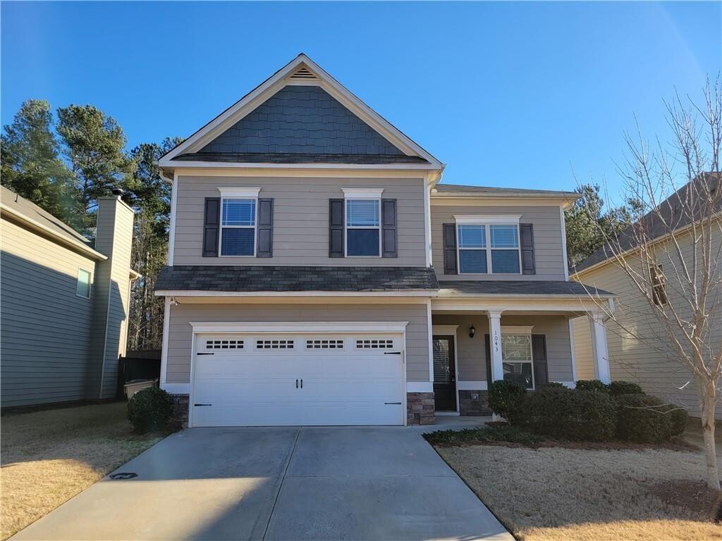 Beautiful move-in ready home conveniently located near schools, shops, parks, I-85, and Hwy 53. Two-story home features an open concept floor plan on the main level and all bedrooms located on the upper level. From the welcoming foyer, the living room is on the right and just adjacent to it is a full bathroom and coat closet. Gorgeous Kitchen with large island, stone counters, and pantry. Opens up to the Family Room and Breakfast Nook/Dining Area. Upper level features a large Master Suite with an ensuite bathroom with a separate tub and shower, walk-in closet, and double vanities. Three secondary bedrooms, a shared bathroom, and Laundry Room are also located on the upper level. Privately fenced and leveled backyard and enjoy community amenities at Creekside Village including a clubhouse and pool!