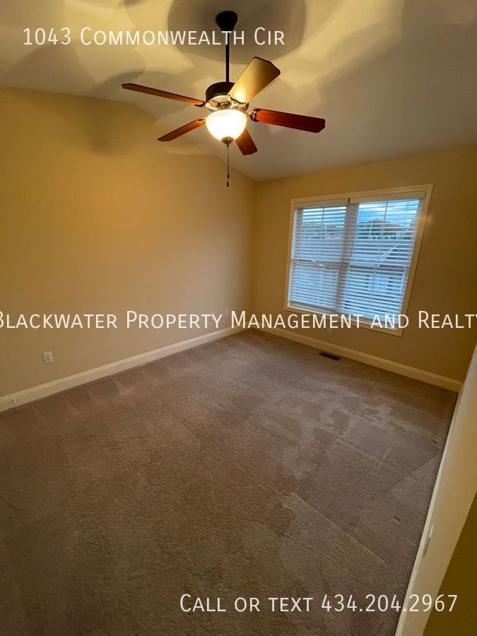 Welcome Home to 1043 Commonwealth Circle! This gorgeous 3 bedroom 2.5 bathroom story townhouse is located in the Farmington Community with close proximity to 221 for all your dining and convenience needs! JF Schools within minutes drive. Showings to APPROVED APPLICANTS only, move in after December 10, 2025! You will not want to miss out on this, with the spacious living room with separate great room which makes this home perfect for entertaining. Beautiful galley kitchen with bar seating and stainless range, refrigerator, dishwasher, and microwave. Upstairs features primary bedroom with walk-in closet and private bathroom along with tray ceilings. Two bedrooms with shared hallway bathroom complete the upstairs. In the lower level, there is unfinished storage area along with one car garage! Laundry connections and an oversized storage area! Dogs accepted on a case by case basis with non-refundable pet fee and additional monthly fee. Tenant is responsible for all utilities. $45 Application Fee Per Person. Listed Exclusively with Blackwater Property Management and Realty. Trash