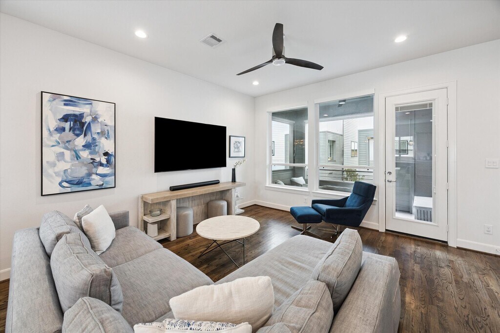 Welcome home to a beautifully maintained single-family home the Greater Heights area. This open-concept home features an inviting first floor with wood-style tile floors,a guest suite with kitchenette,abundant windows,& a full bath. The second floor showcases a spacious open living area and balcony with many windows,and high ceilings! The kitchen offers a quartz island,ample counters,and stainless steel appliances. Upstairs,wood floors adorn the third bedroom and primary suite. The primary suite offers space for a king bed and features abundant natural light,two walk-in closets,and a primary bath with a standalone shower,soaking tub,and double vanity. The 3rd bedroom has an en-suite bathroom. This gated community provides easy access to downtown,I-10,610,and 290,and is near Heights hot spots like White Oak,11th Street,MKT Heights,and Heights Mercantile. It's also conveniently close to Memorial Park,the White Oak Trails,and the hike-and-bike route. W/D included! MLS# 65174490