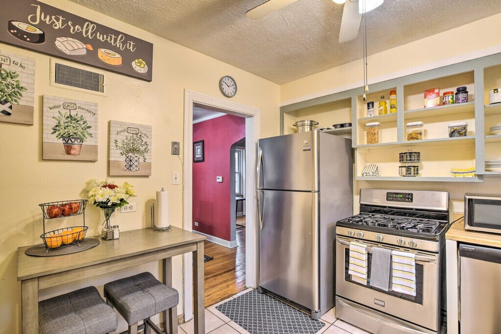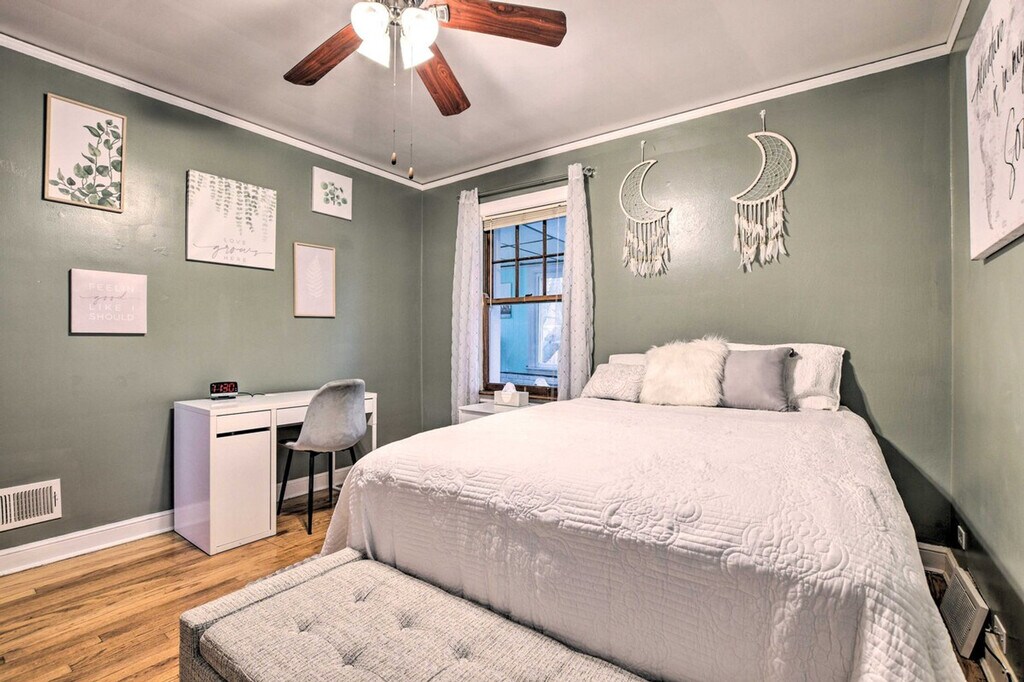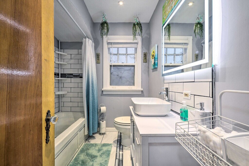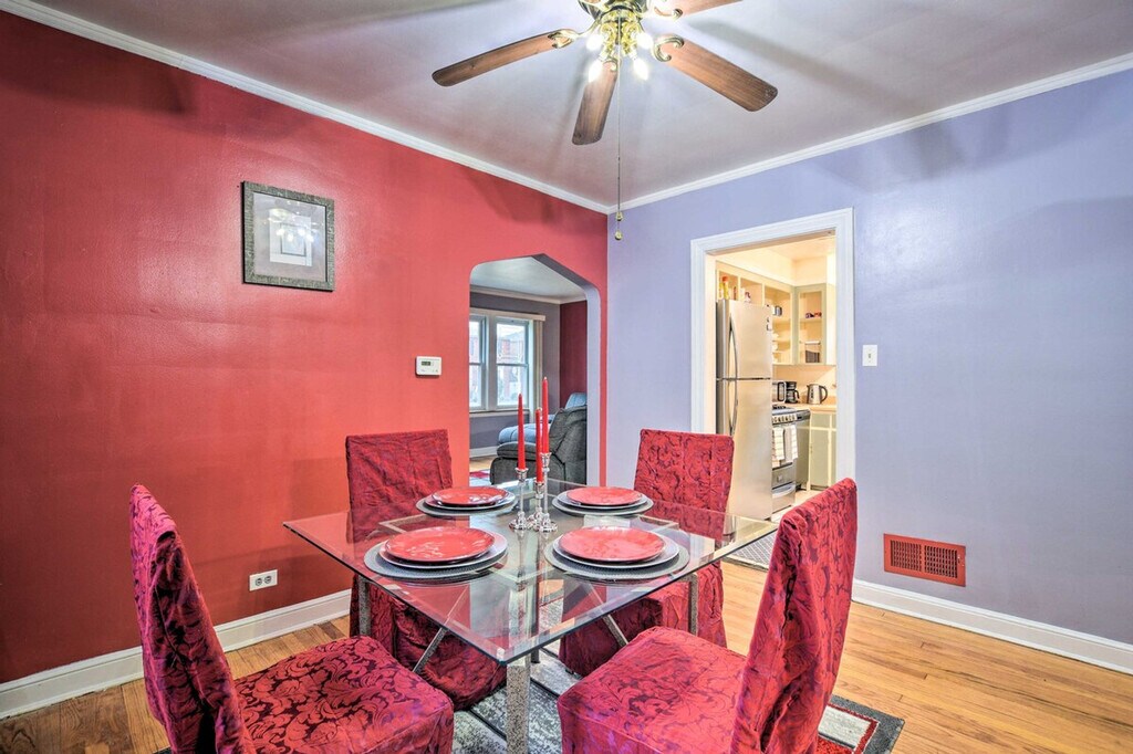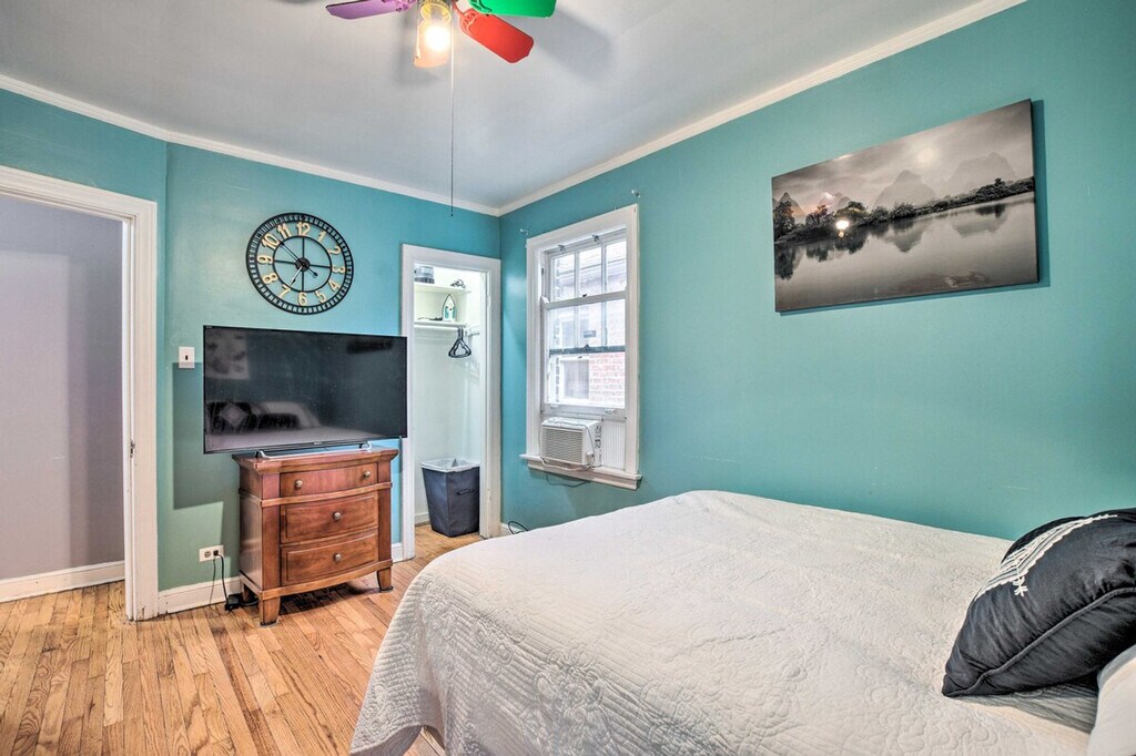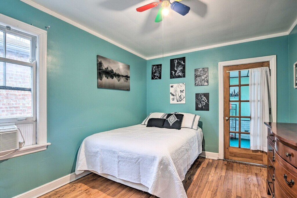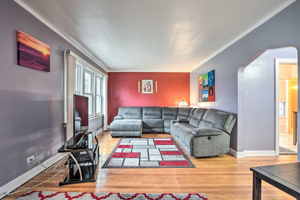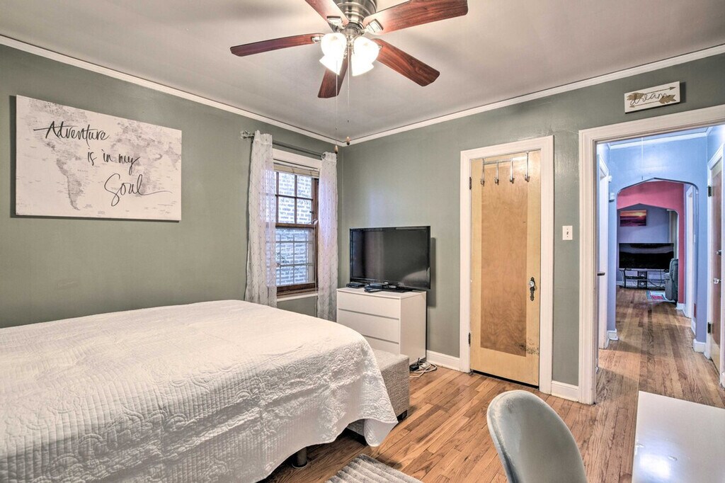Discover the best of Chicago with this charming 2-bedroom, 1.5-bath apartment. Whether you're here for business or pleasure, this vacation rental offers all the necessities for a stress-free getaway. Feel at home with a fully equipped kitchen for homemade meals, a cozy sitting room for family game nights, and enjoy entertainment on 3 Smart TVs. Located just 5 stairs up, this apartment provides easy access to Rainbow Beach, Soldier Stadium, and Chicago's Loop downtown. This apartment features 3 Smart TVs with Netflix, a private yard, hardwood floors, board games, books, LED lights, and a fogless bathroom vanity mirror. The kitchen is fully equipped with cooking basics, a refrigerator, microwave, stove/oven, dishwasher, dishware and flatware, blender, coffee maker, Crockpot, toaster, and spices. Enjoy complimentary WiFi and a remote work-friendly environment. Guests can enjoy free street parking on a first-come, first-served basis. Additional fees and taxes may apply. Situated 8 miles from Hyde Park attractions, this apartment offers convenient access to Chicago's vibrant neighborhoods. Explore nearby Rainbow Beach, cheer on the Bears at Soldier Stadium, or delve into the bustling downtown Loop. With free street parking available on a first-come, first-served basis, getting around is hassle-free. The property requires 5 stairs to enter and features a Ring doorbell with an exterior security camera facing the front entry for your safety. No smoking, vaping, pets, events, parties, or large gatherings are allowed. Guests must be at least 30 years old to book, and a photo ID may be required upon check-in. The apartment is remote work-friendly, offering complimentary WiFi to support your work-from-home needs. [SI]