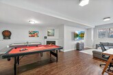Feel at home in this fabulous and expansive 4-bedroom, 3-bathroom apartment located in the trendy Humboldt Park neighborhood. This spacious "duplexed down" unit features hardwood flooring throughout the main level, an updated kitchen, and large living and dining rooms. The primary suite includes a full bathroom, king-size bed, and walk-in closet, while all three secondary bedrooms are equipped with queen-size beds. The lower level offers additional recreation space with a large TV, pool table, and work-from-home desk, as well as a large balcony with table seating. This apartment is designed with you in mind, offering a spacious "duplexed down" layout. The main level boasts hardwood flooring, a living room with a couch, chair, and large television, and a fully stocked kitchen with white cabinetry, granite countertops, and stainless steel appliances. The dining room comfortably seats six. Down the hall, you'll find three bedrooms and a laundry closet. The primary suite is located at the rear of the home, featuring an ensuite bath, walk-in closet, and access to the rear balcony. The lower level expands the home with a large recreation space, a 75-inch TV with a gaming console, a workstation, a pool table, air hockey, and a dartboard. The rear balcony offers outdoor space with a table and chairs. Enjoy the convenience of free garage parking during your stay. Situated in the vibrant Humboldt Park neighborhood of Chicago, this apartment provides a true Chicago neighborhood feel. The location is within walking distance to a variety of fabulous local restaurants and is conveniently close to Chicago's public transportation, making it easy to explore the city. There are no parties or gatherings allowed at this home. If you smoke in the property, you will be charged an additional $500 cleaning fee. Guests must be 25 years of age to book this property and provide the full names and ages of all guests over 18 years old. This home is located in a 3-unit apartment building, so please be respectful of neighbors. All excess garbage can be placed in the bins in the alleyway behind the garage. We appreciate your cooperation in maintaining a clean and respectful environment. The lower level includes a work-from-home desk, providing a comfortable space for remote work. Registration Number: R2