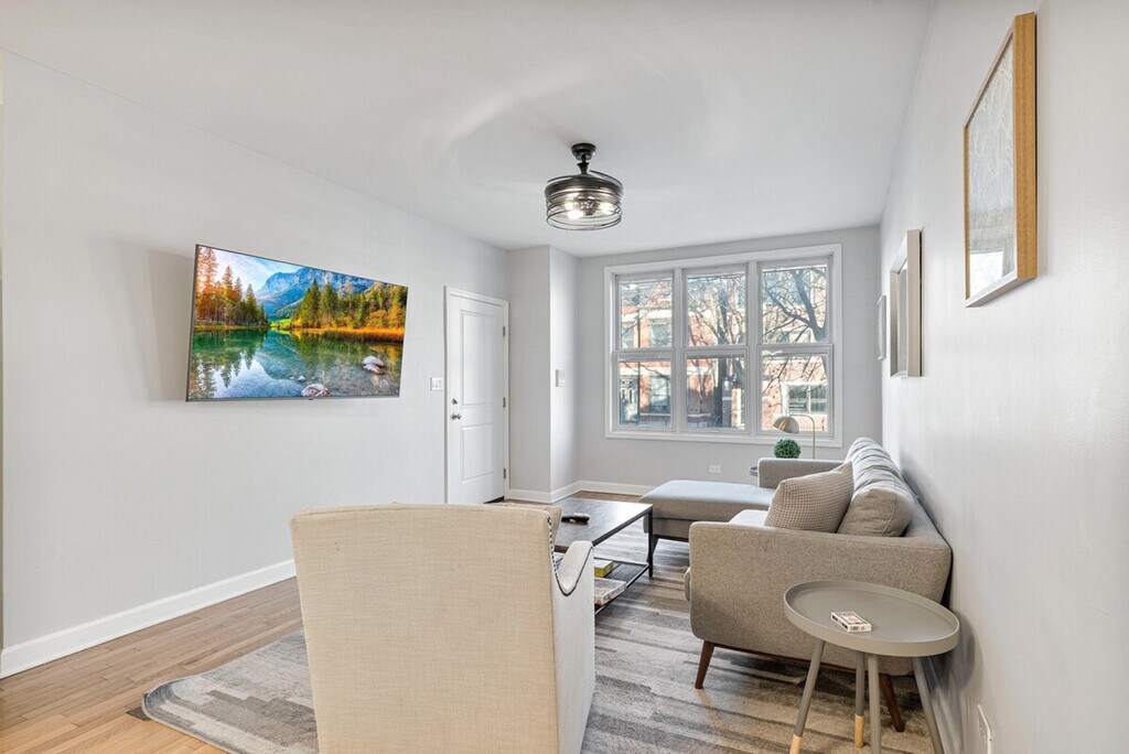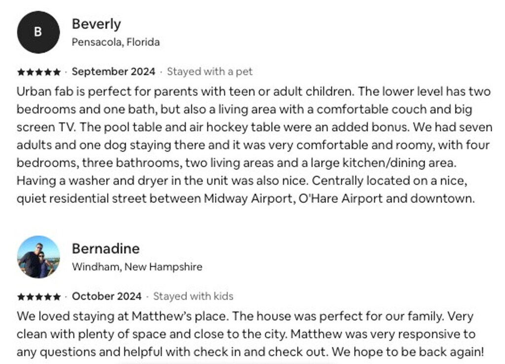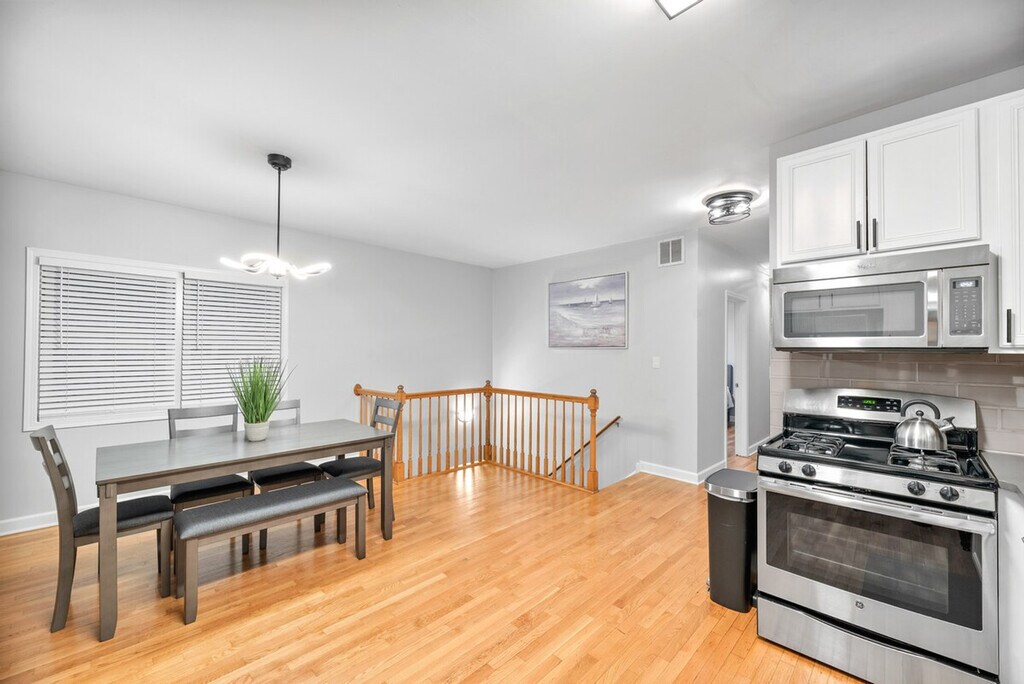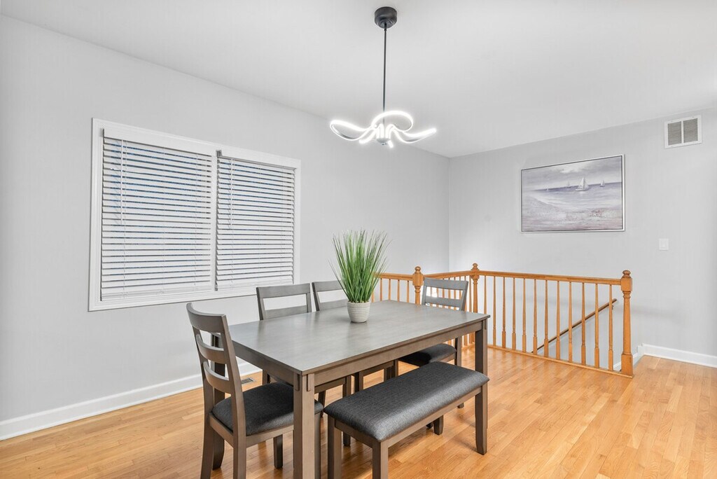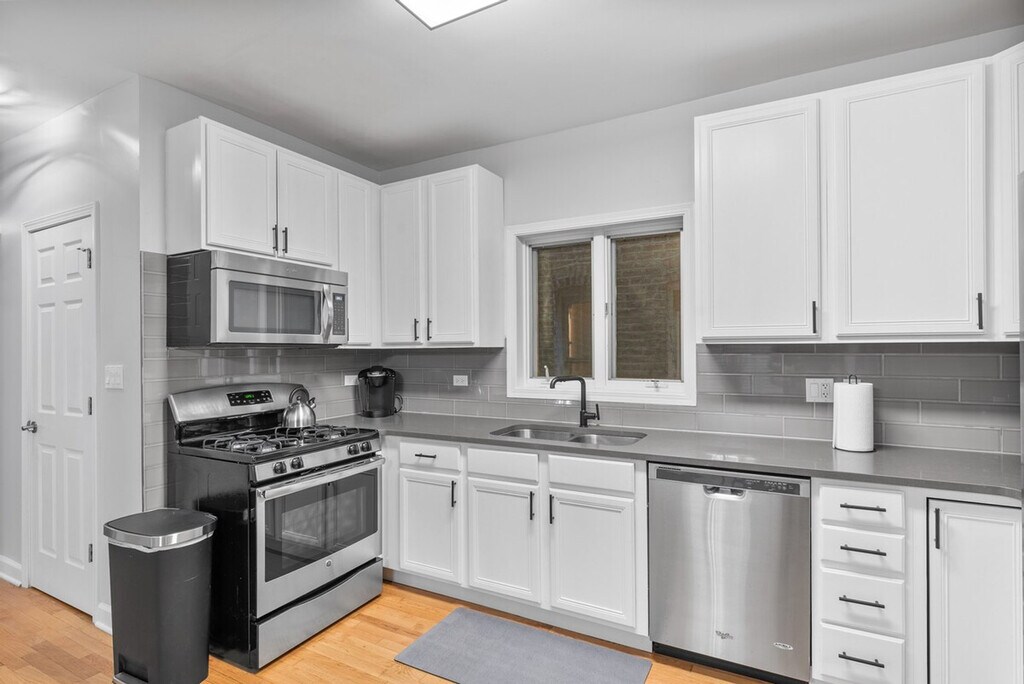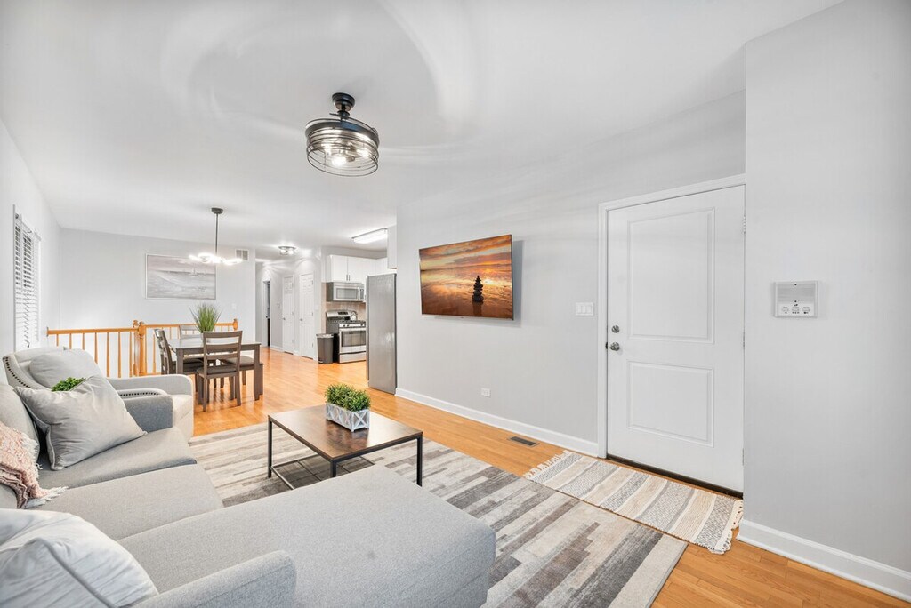 Feel at home in this fabulous and expansive 4-bedroom, 3-bathroom apartment located in the trendy Humboldt Park neighborhood. This spacious "duplexed down" unit features hardwood flooring throughout the main level, an updated kitchen, and large living and dining rooms. The primary suite includes a full bathroom, king-size bed, and walk-in closet, while all three secondary bedrooms are equipped with queen-size beds. The lower level offers additional recreation space with a large TV, pool table, and work-from-home desk, as well as a large balcony with table seating. This apartment is designed with you in mind, offering a spacious "duplexed down" layout. The main level boasts hardwood flooring, a living room with a couch, chair, and large television, and a fully stocked kitchen with white cabinetry, granite countertops, and stainless steel appliances. The dining room comfortably seats six. Down the hall, you'll find three bedrooms and a laundry closet. The primary suite is located at the rear of the home, featuring an ensuite bath, walk-in closet, and access to the rear balcony. The lower level expands the home with a large recreation space, a 75-inch TV with a gaming console, a workstation, a pool table, air hockey, and a dartboard. The rear balcony offers outdoor space with a table and chairs. Enjoy the convenience of free garage parking during your stay. Situated in the vibrant Humboldt Park neighborhood of Chicago, this apartment provides a true Chicago neighborhood feel. The location is within walking distance to a variety of fabulous local restaurants and is conveniently close to Chicago's public transportation, making it easy to explore the city. There are no parties or gatherings allowed at this home. If you smoke in the property, you will be charged an additional $500 cleaning fee. Guests must be 25 years of age to book this property and provide the full names and ages of all guests over 18 years old. This home is located in a 3-unit apartment building, so please be respectful of neighbors. All excess garbage can be placed in the bins in the alleyway behind the garage. We appreciate your cooperation in maintaining a clean and respectful environment. The lower level includes a work-from-home desk, providing a comfortable space for remote work. Registration Number: R2 [SI]