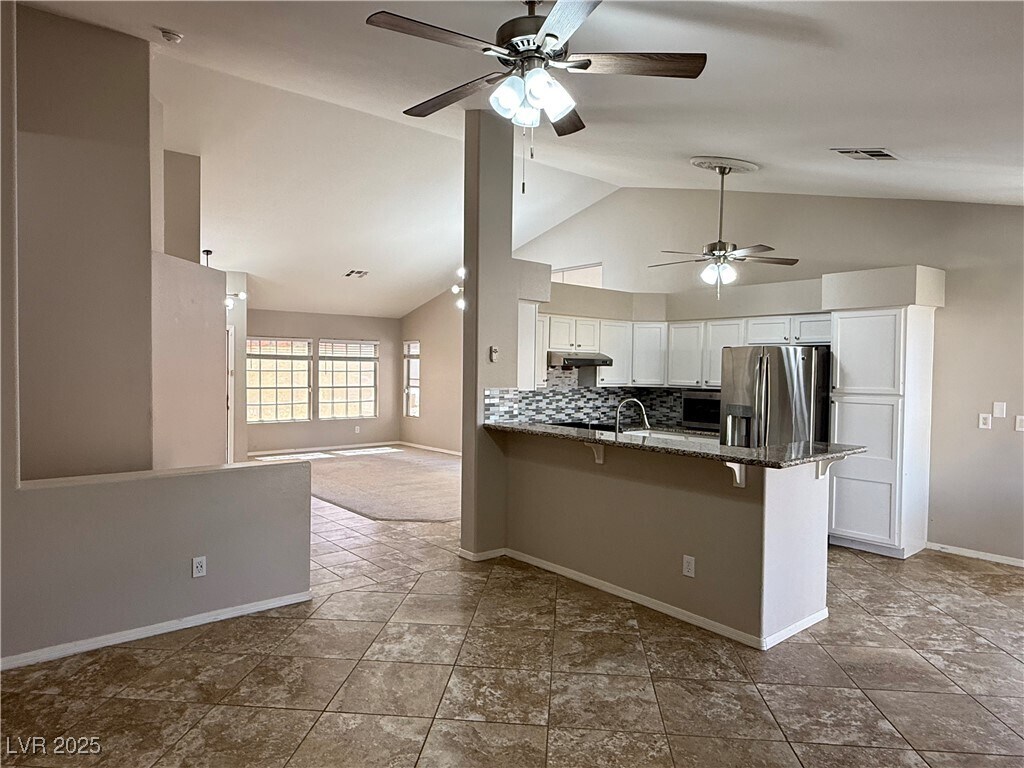 Home featuring Solar Energy! SOLAR PAID OFF , save electricity bill . Well maintained single story home 4 Bedrooms ,2 full baths , 3-car garage on quite & great community with No HOA. Bright and spacious floor plan with vaulted ceilings.Each bedroom with high ceilings & ceiling fans throughout . kitchen overlooks family room with fireplace*kitchen features stainless steel appliances, granite counter, breakfast bar AND breakfast nook area! Easy-care landscaping front & back and plenty of room for weekend gatherings! Convenient location right next to the 215 freeway with many local restaurants, amenities, and recreational activities nearby! Very close to Sam’s club & Costco .Approximately 15 minutes to the Las Vegas Strip, Allegiant Stadium, T-Mobile Arena, Approximately 6 minutes Airport.