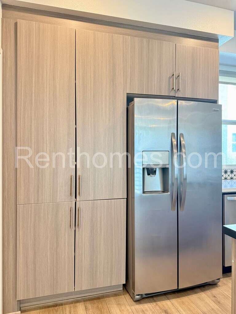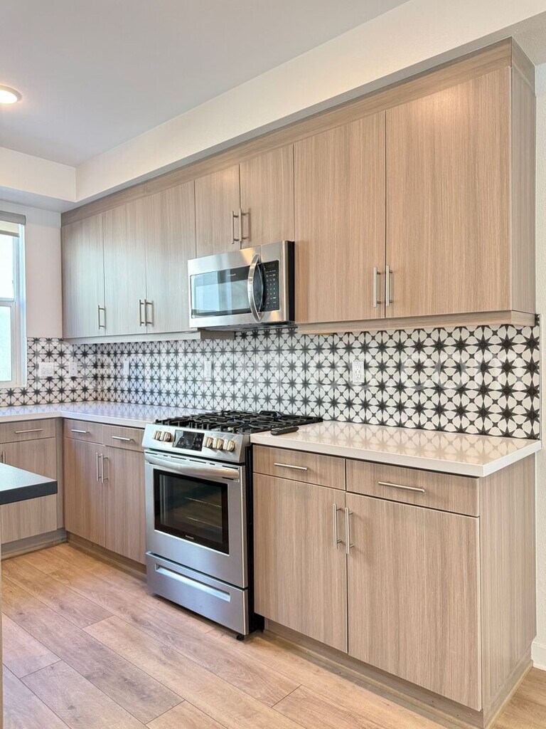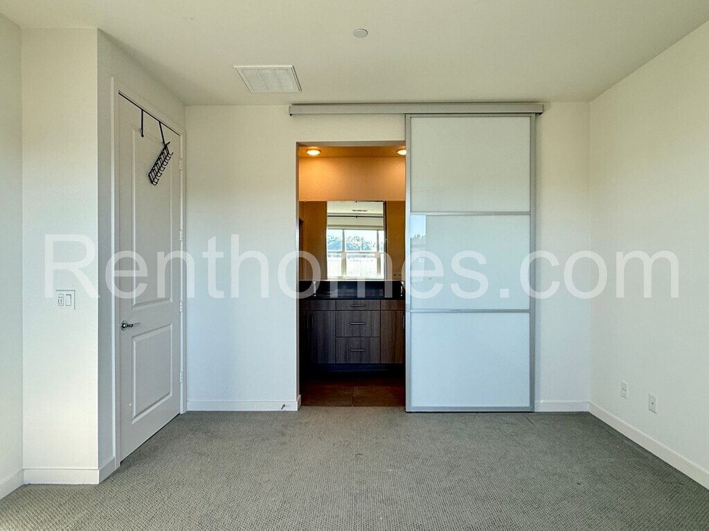 Welcome to Mission Valley, a stunning townhouse located in the vibrant city of San Diego, CA. This modern, three-story townhome, built in 2020, boasts four spacious bedrooms and 3.5 bathrooms. The first-floor bedroom comes with a private bathroom featuring tile floors, a quartz vanity, and a walk-in shower. The living room is equipped with recessed lighting and a wall-mounted TV in "As-Is" condition. The kitchen is a chef's dream with quartz counters, a center island, stainless steel appliances, and a five-burner gas stove and oven. The top floor houses bedrooms 2 and 3, and a bathroom with tile floors, a quartz vanity, and a tub/shower combo. The primary bedroom offers views of the southern hills, a walk-in closet, a quartz vanity with double sinks, and a walk-in shower. Additional amenities include a microwave, refrigerator, dishwasher, balcony, full-size stack washer and dryer, faux wood luxury vinyl plank floors, high ceilings, dual pane windows, and central heat and air conditioning. The townhouse also features an attached 2-car garage with an opener and epoxy coated floors. Conveniently located near a trolley stop, shopping, and restaurants, this townhouse offers a blend of comfort and convenience. Please note, no pets or co-signers are allowed. If you are interested, please drive by the home to see if the location and neighborhood meet your needs, then call American Heritage Properties at and we will be happy to set an appointment to show you the home. To see our complete listings or to apply now visit our website at