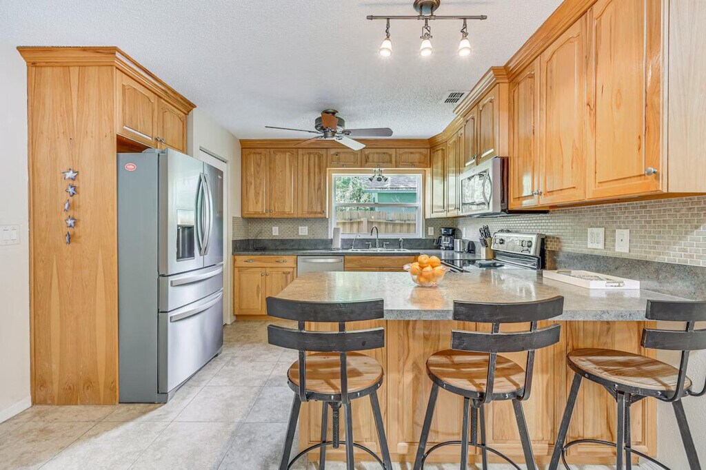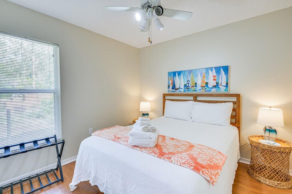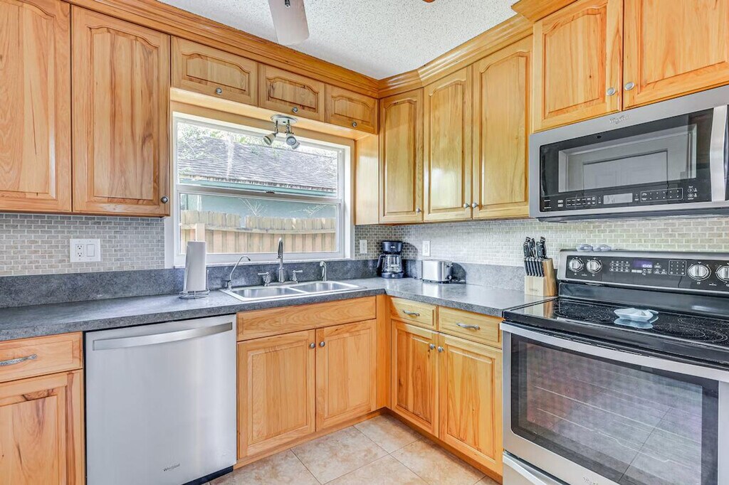 Feel at home in this New Port Richey vacation rental, the perfect home base for an extended stay. This single-story home requires two external steps for entry and features 3-bedrooms and 2-baths. This home offers a smart TV with streaming, a screened porch, a charcoal grill, and indoor and outdoor dining areas. Beach towels, an umbrella, and board games are provided for your enjoyment. The kitchen is equipped with a stove/oven, refrigerator, dishwasher, microwave, Crockpot, toaster, drip coffee maker, blender, dishware, flatware, cooking basics, an ice maker, and a water filter. Linens, towels, a washer and dryer, central air conditioning and heating, a hair dryer, hangers, an iron and board, laundry detergent, trash bags, and paper towels are also provided. Driveway parking is available for 2 vehicles. Hike the trails at Jay B. Starkey Wilderness Park or sunbathe at Hudson Beach. Smoking, pets, events, parties, and large gatherings are not allowed. Guests must be at least 25 years old to book. Additional fees and taxes may apply, and a photo ID may be required upon check-in. [SI]