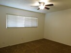 This home has a remodeled kitchen with granite countertops, a gas stove and dishwasher. Home features laminate wooden floors in the living room, with tile flooring in the kitchen and bathrooms with new carpet in the bedrooms. Ceiling fans throughout. The guest bathroom is a shower & tub combo, the master bath is a standing shower. The washer & dryer hookups are in the garage with electric hook ups. There is a 2 car garage and is 1342qft. Rental Ins. Required.