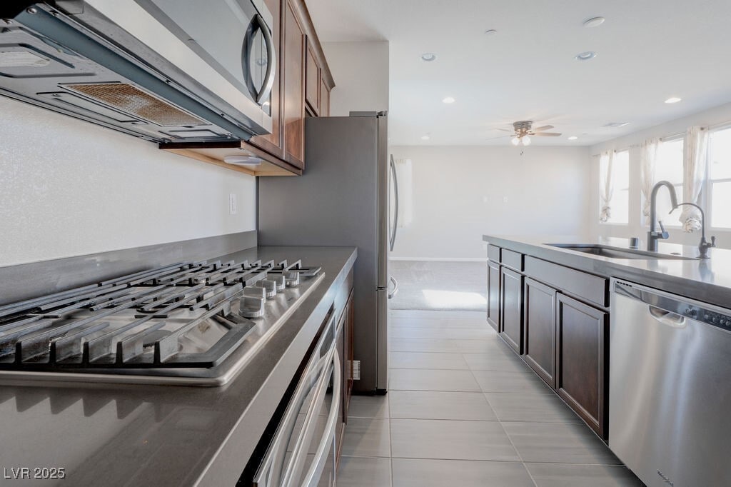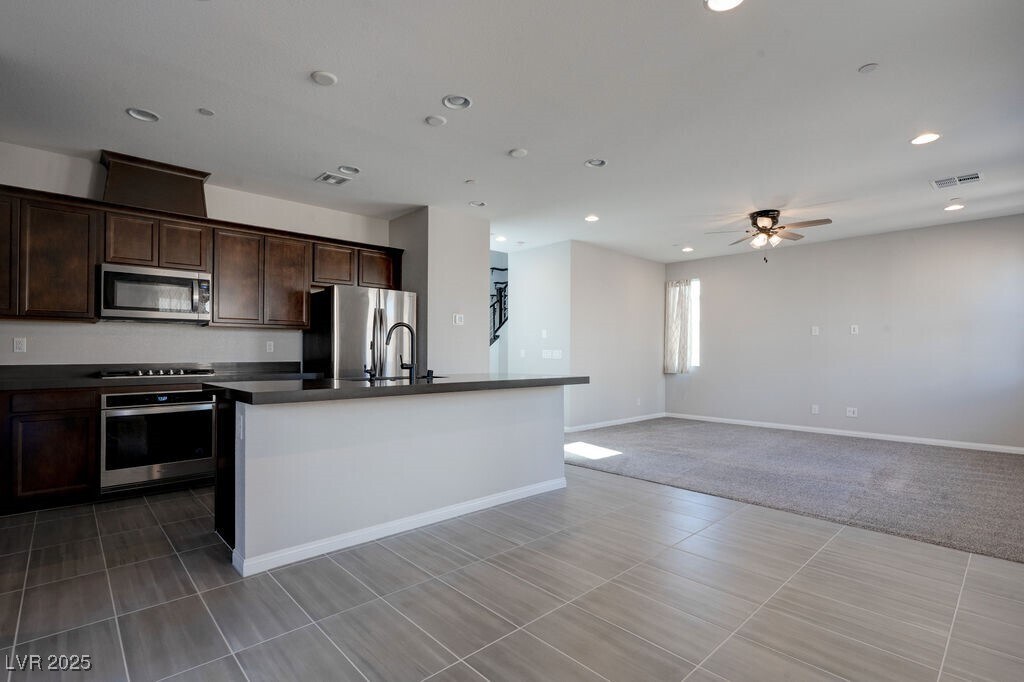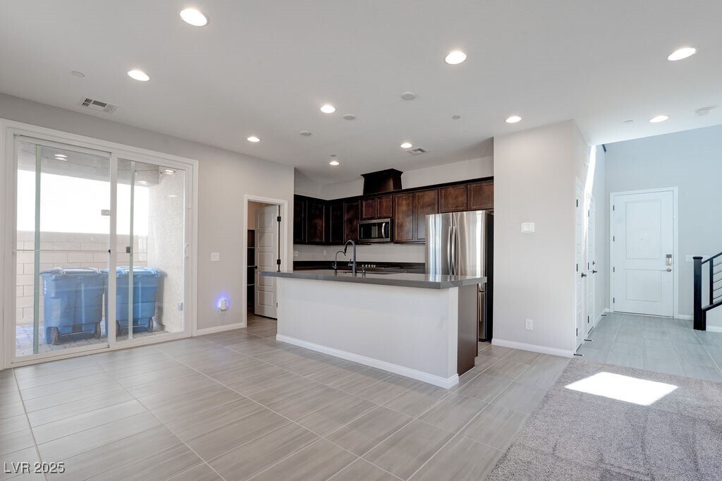 This stunning two-story home features three spacious bedrooms, two and a half bathrooms, and an oversized loft — offering plenty of space for living and entertaining. The extended patio includes elegant pavers and an 8-foot sliding glass door that fills the home with natural light. The upgraded kitchen is equipped with stainless steel appliances and custom cabinetry, creating a functional and stylish cooking space. Additional features include dual sinks with adult-height cabinets in the secondary bath, a modern open stair rail design, and upgraded tile and carpet flooring throughout. Situated on a huge lot with a fully finished backyard, this home is perfect for outdoor enjoyment. The spacious two-car garage offers ample parking and extra storage. Combining style, space, and comfort, this beautiful property is move-in ready and a must-see!