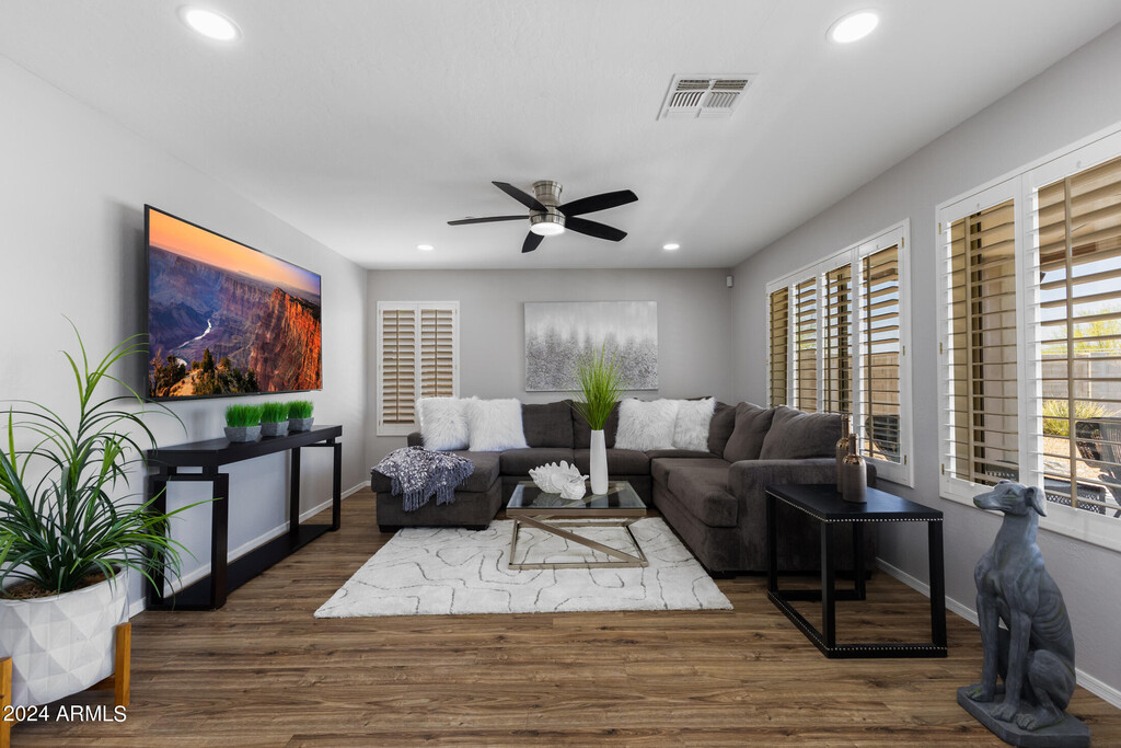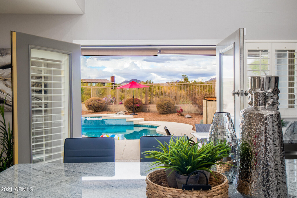 PRIVACY--NO HOMES BEHIND IT!!!! VACANT AND AV.AILABLE AUG 1ST,2025!!! GREAT FLOORPLAN,3 FULL BATHROOMS,4 BEDROOMS. ENORMOUS HEATED POOL AND SPA! GORGEOUS VIEWS FROM GROUND LEVEL AND DECK OFF MASTER!!!! HUGE LOT!!! NO HOMES BEHIND! ONLY DESERT!!! PRIVATE!!! MASSIVE FAMILY ROOM W/sectional couch OPENS TO KITCHEN WITH NEW HIGH END GRANITE! ISLAND SEATS 6!,WOOD LIKE FLOORING,NO CARPET!!!!!! IN A MASTER PLANNED COMMUNITY WITH AQUATIC PARK WITH LAZY RIVER,SLIDES,SKATE BOARDING PARK,GOLF COURSE,2 COMMUNITY POOLS,B-BALL COURTS,TENNIS COURTS,PICKLEBALL,SUNSET PARK,HIKING TRAILS GALORE! WALK TO RESTAURANTS! SO CLOSE TO KIERLAND,SCOTTSDALE QUARTER,FRWY'S,WMPO,WESTWORLD,SPRING TRAINING! LOCATION,LOCATION!