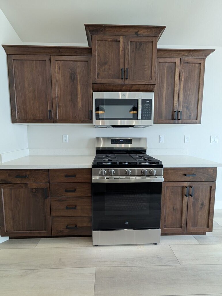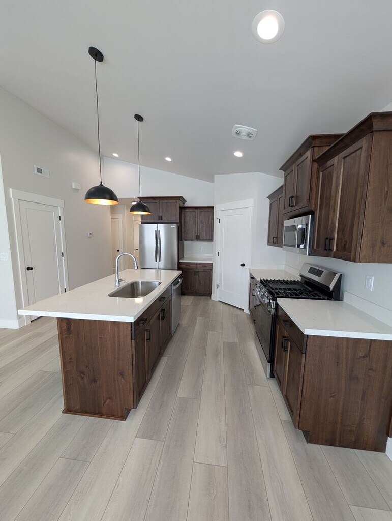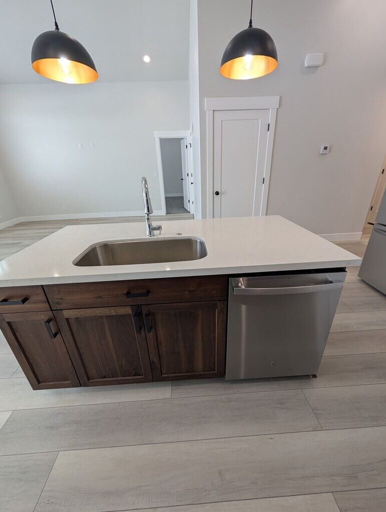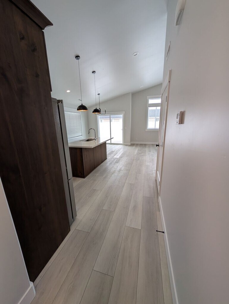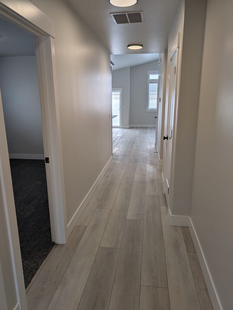 Beautiful Move -in ready new construction 4 bedroom, 2 bath open concept home all on one level. This home is detailed from top to bottom. Custom hickory wood tone kitchen cabinets, with white quartz counter tops, upgraded appliances including gas stove with over the range microwave and side by side refrigerator with icemaker. Warm rich tones throughout with luxury vinyl and carpet in bedrooms. Gas heat, a/c, washer/dryer hookups, water softener, automatic sprinklers, fenced yard, 3 car garage and more. $2400.00 per month, $1150.00 security deposit OAC. Nonsmoking property, dog friendly up to three dogs with pet references.