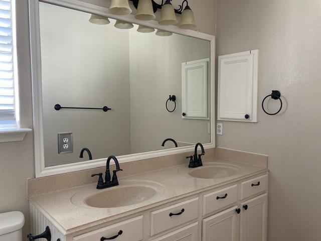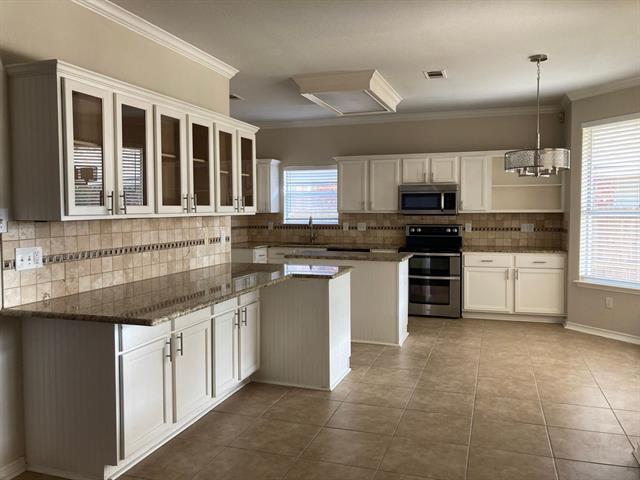 Beautifully 2-story house with great open floor plan featuring 5 bedrooms. All bedrooms upstairs. Large island kitchen with nice granite counters. Two large living rooms down, one that is open to eat-in kitchen, Game room upstairs. Spacious backyard. 1 block to walking trails, Convenient location, easy access to highway, close to shopping and restaurants.
